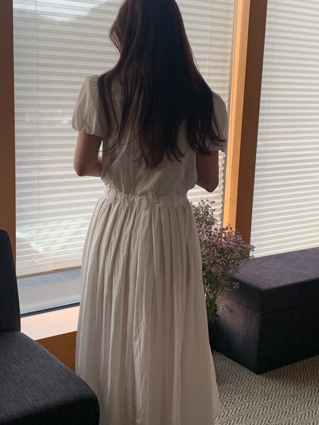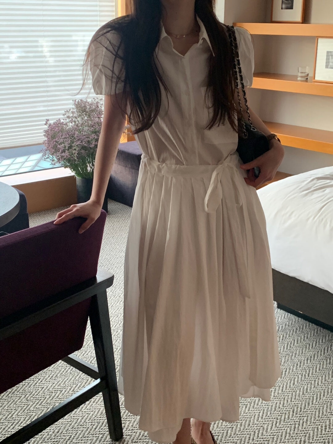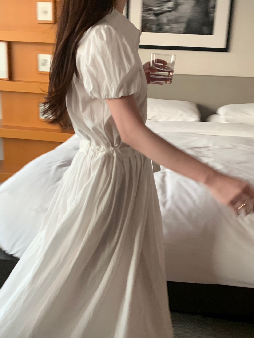 This stunning shirt dress boasts a unique layered wrap skirt design that exudes femininity and chicness. Made from a beautiful rayon/nylon blend material, it offers a cool and luxurious touch to elevate your style. With demure puff sleeves and hand tuck pleats, it's perfect for any occasion.