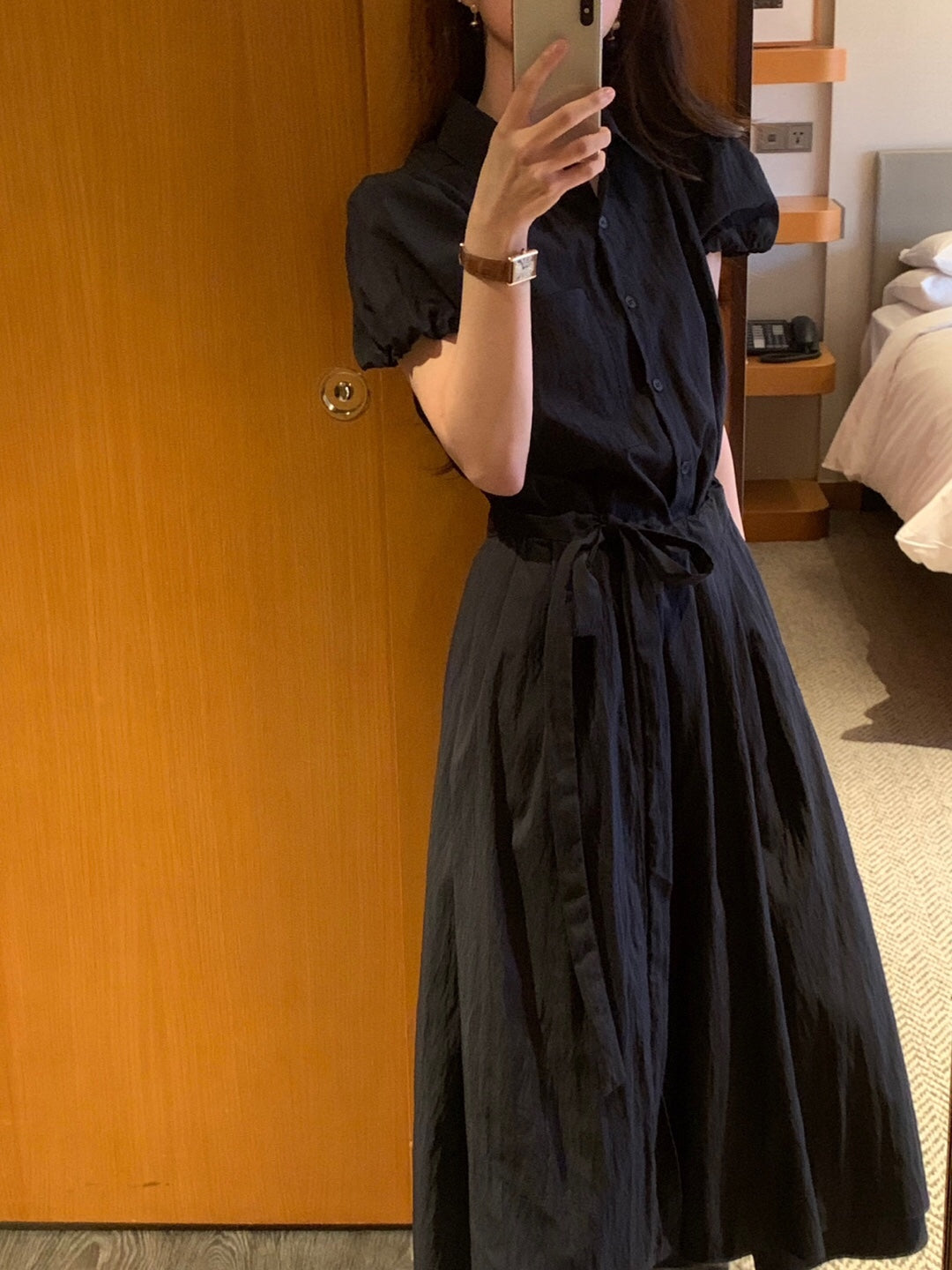 <ABI + ABI Black>Layered Wrap Shirt Dress