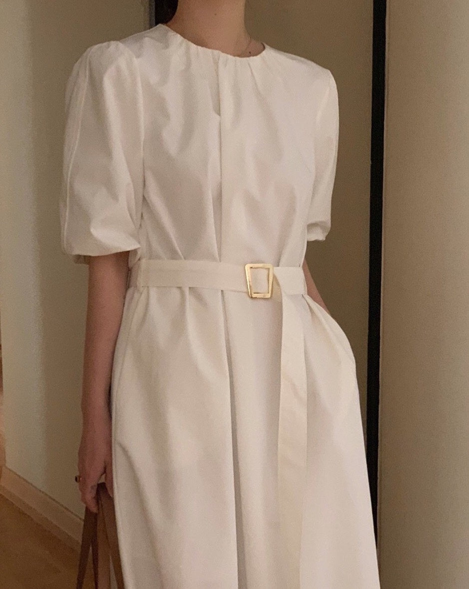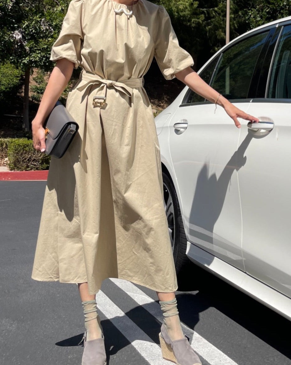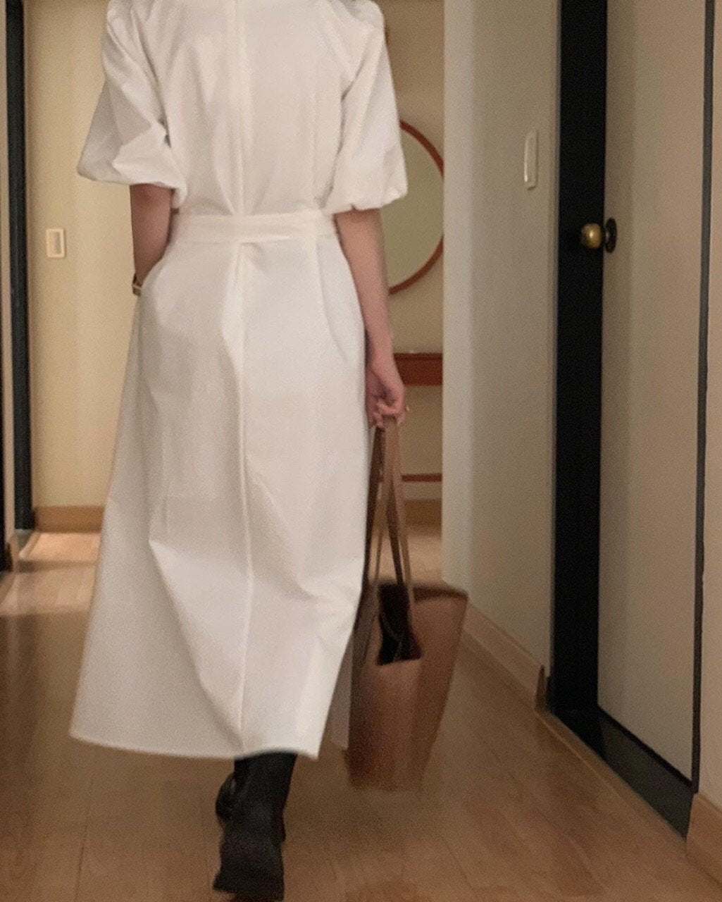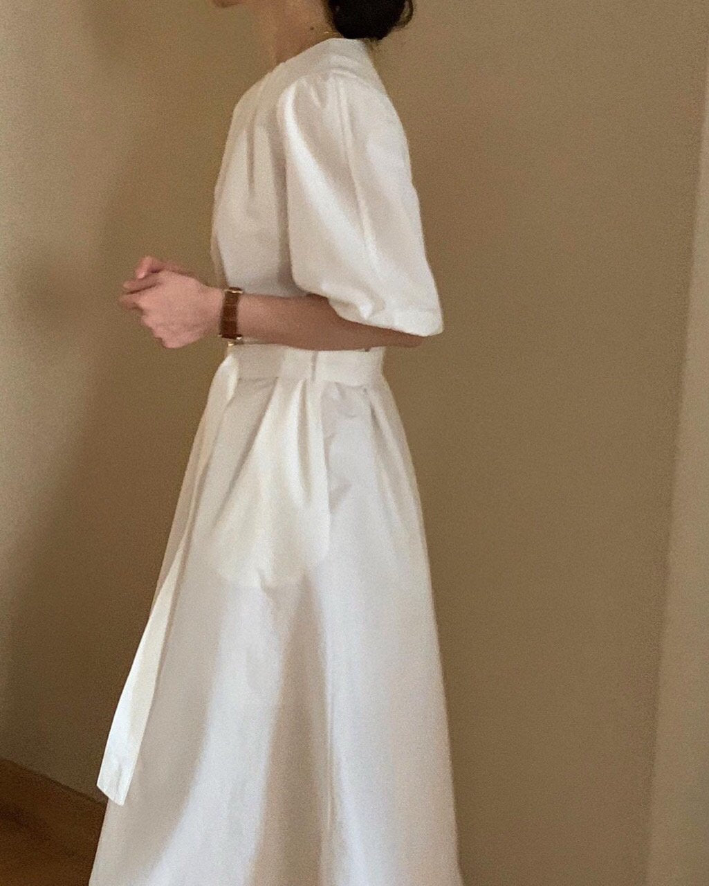 Abi + Ari Black Label Puff Cotton Midi Dress