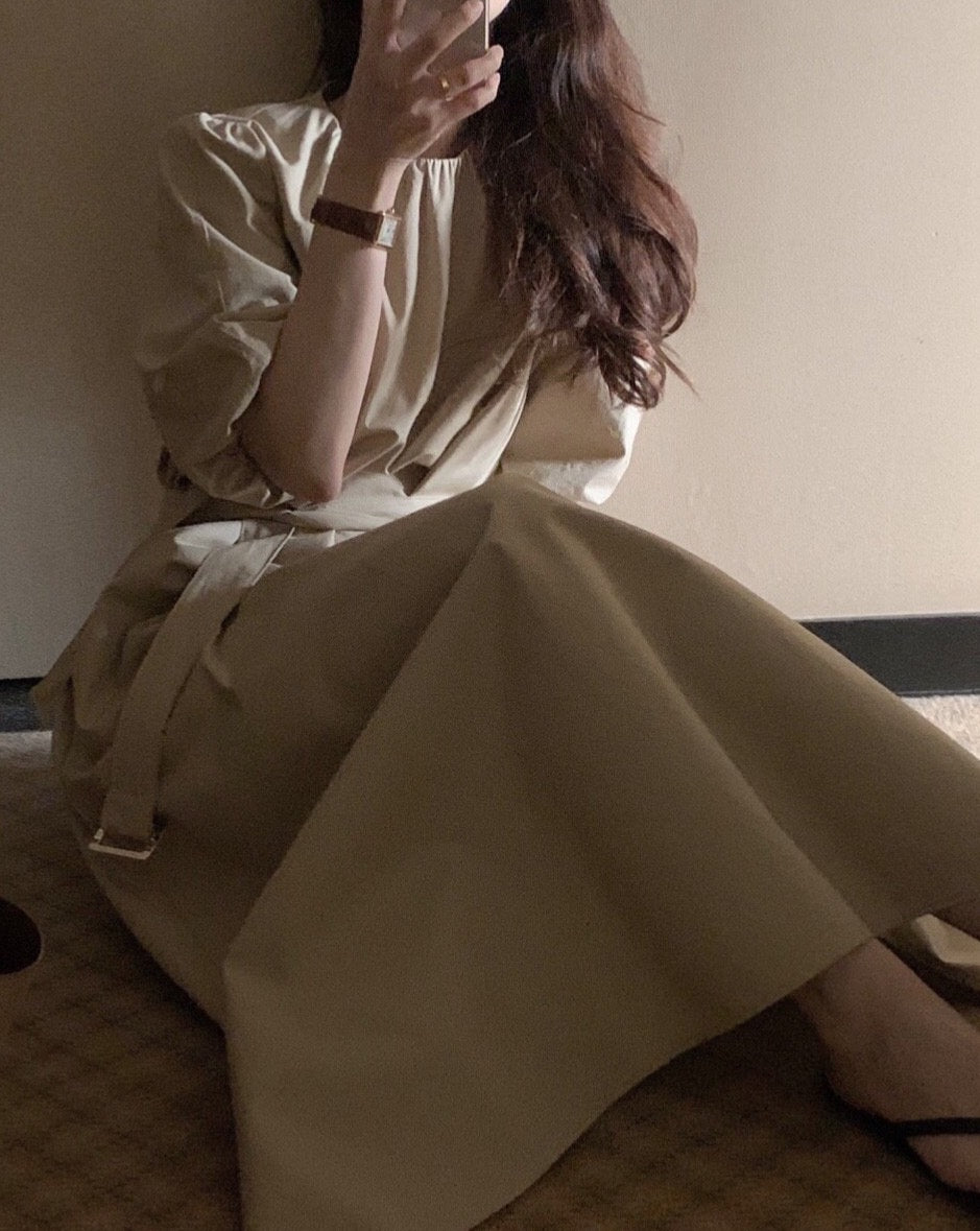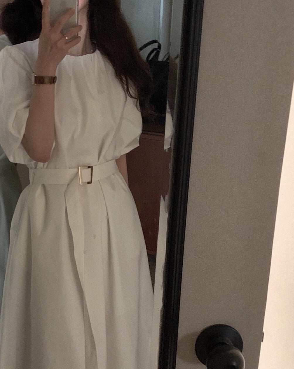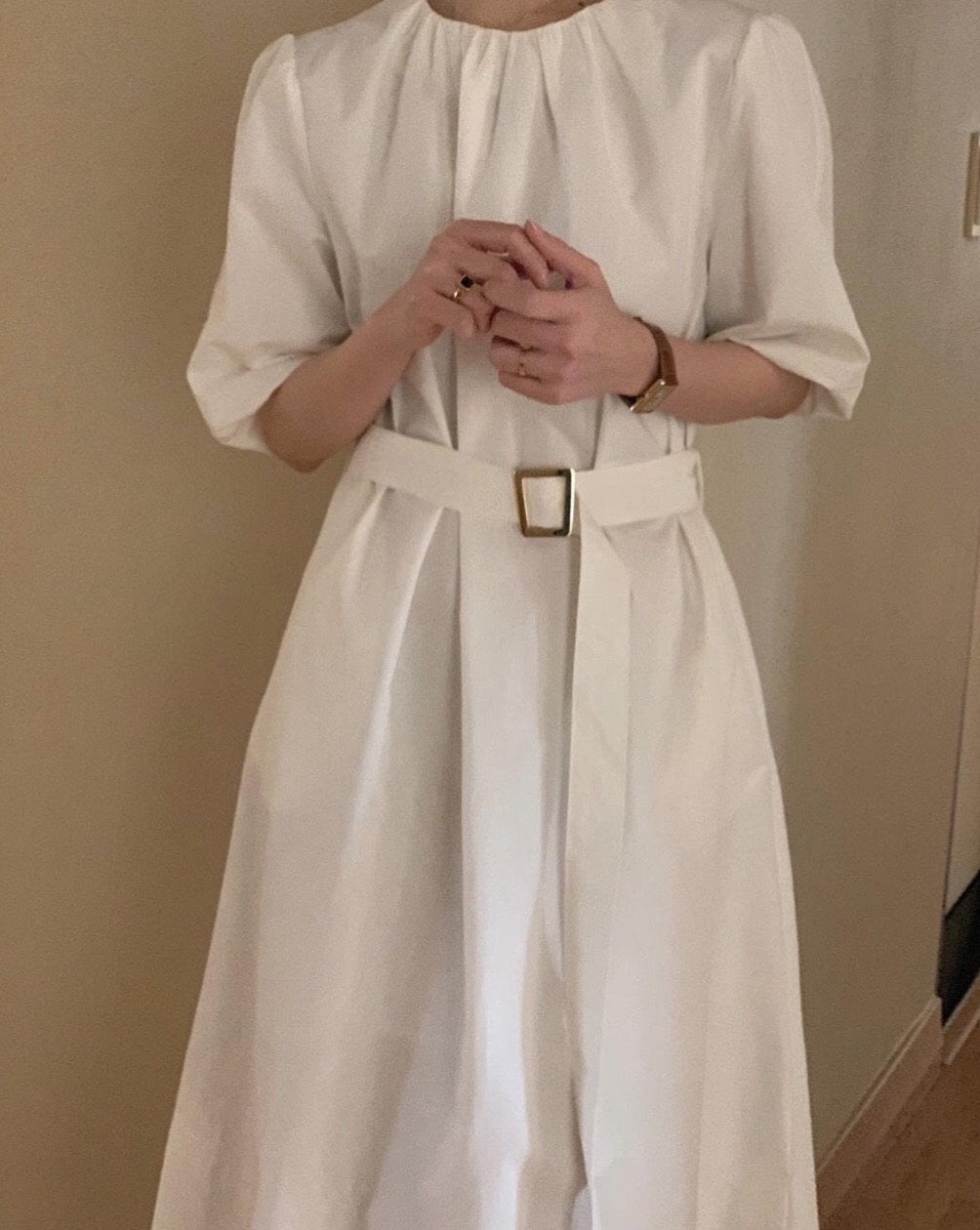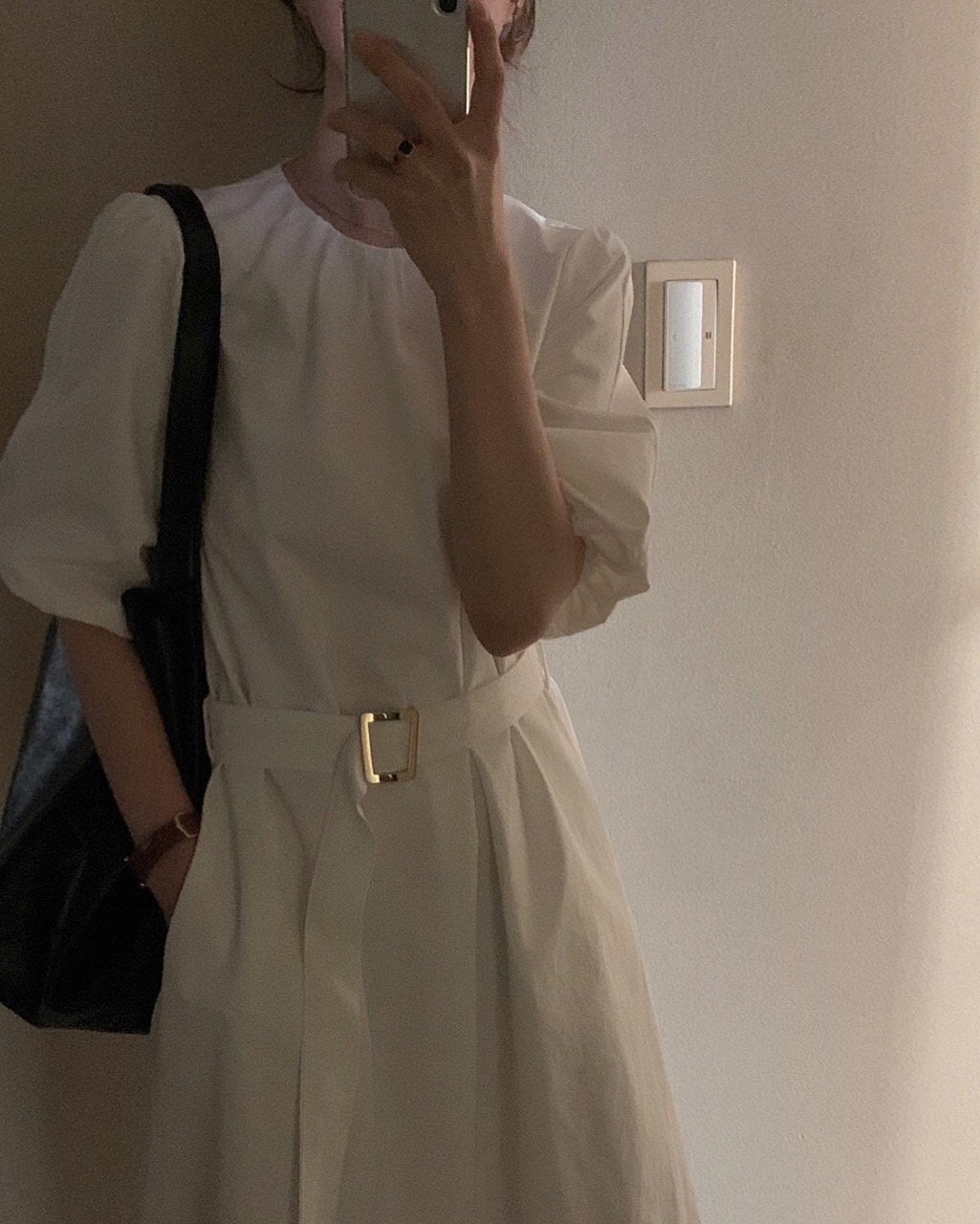 Abi + Ari Black Label Puff Cotton Midi Dress