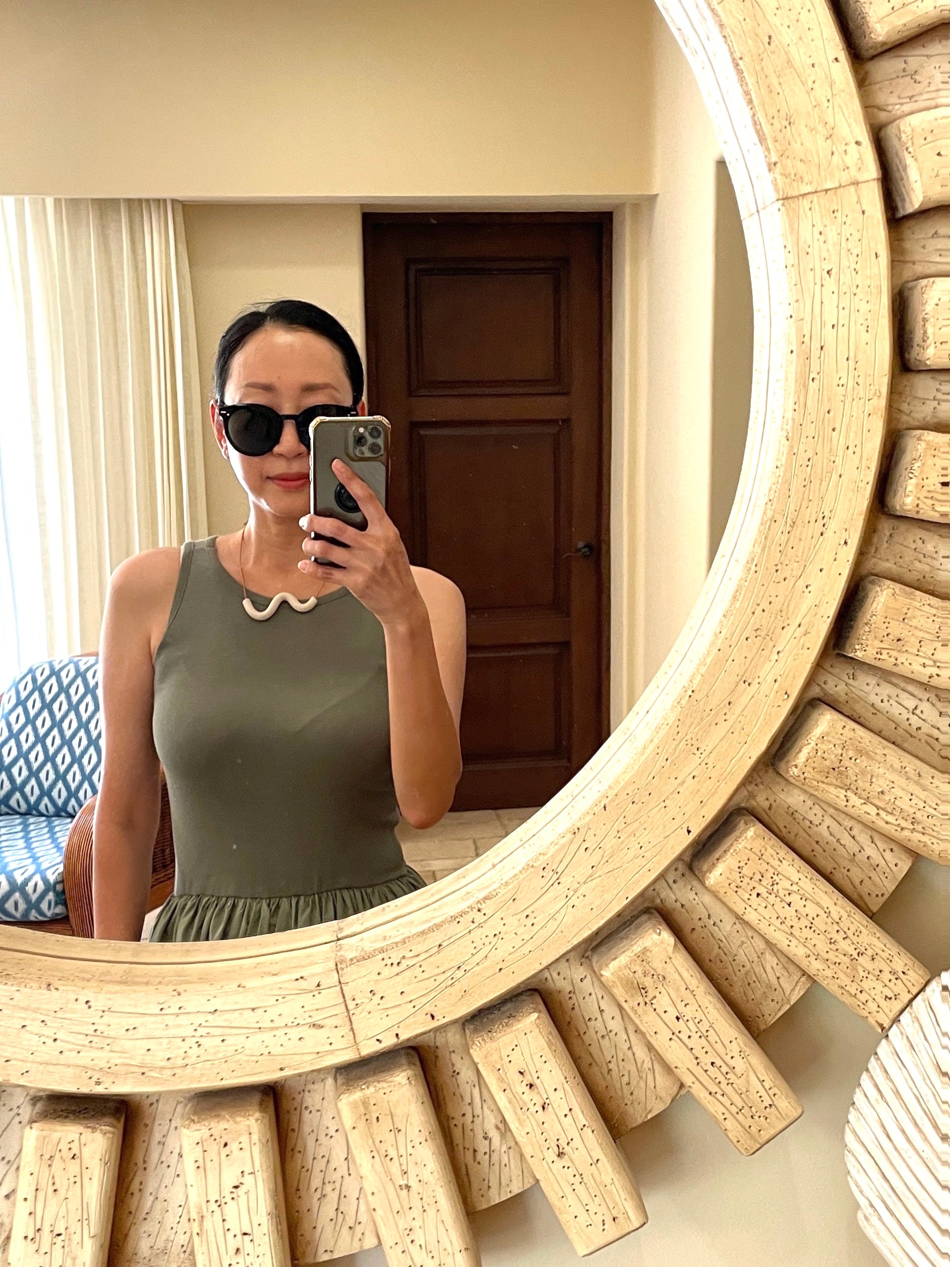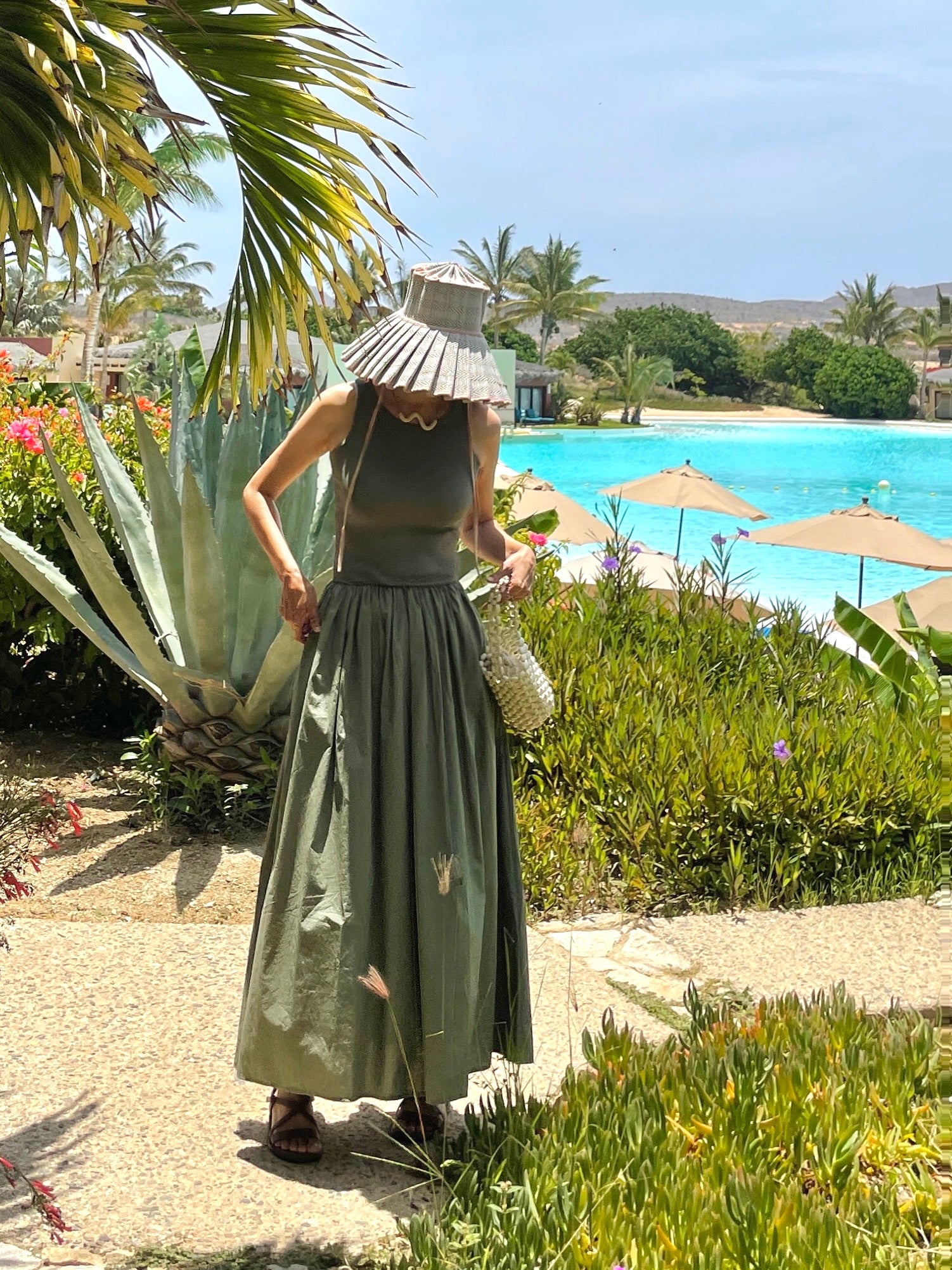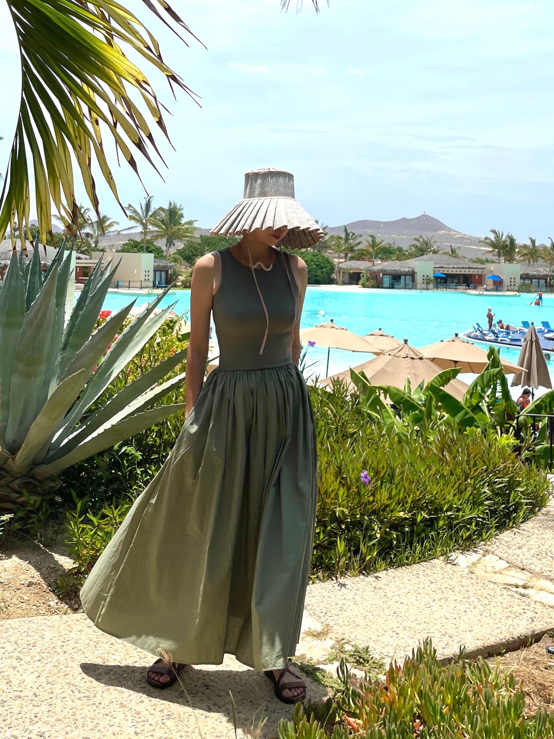 High twisted fine jersey tank top paired up with a full maxi skirt with elastic waist