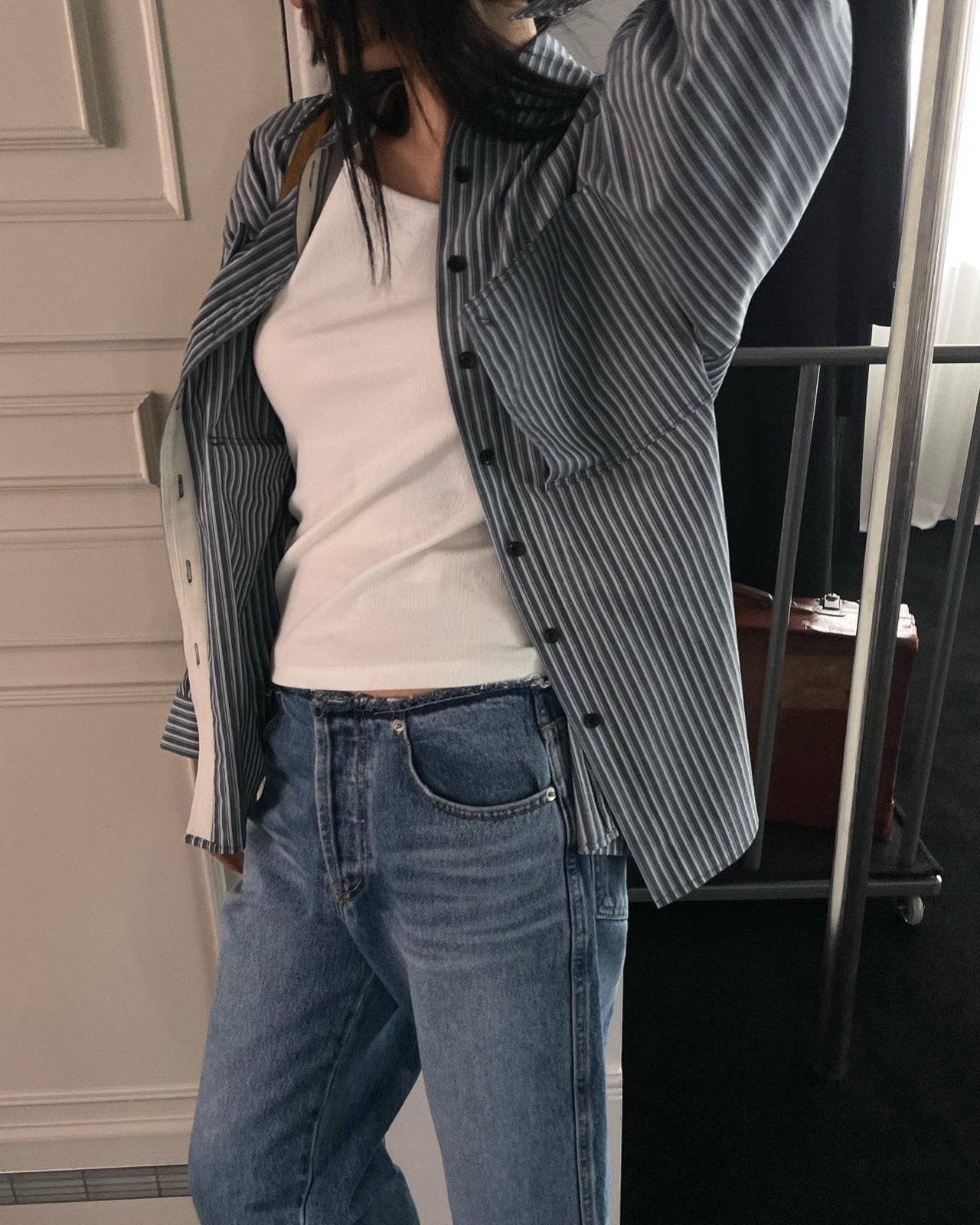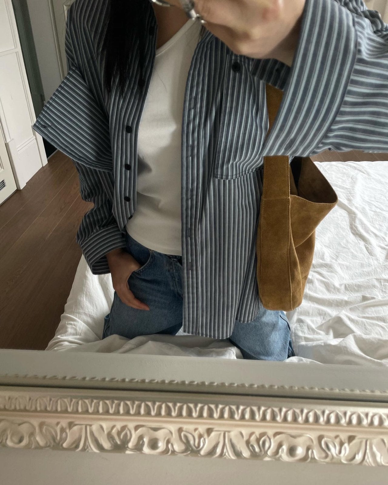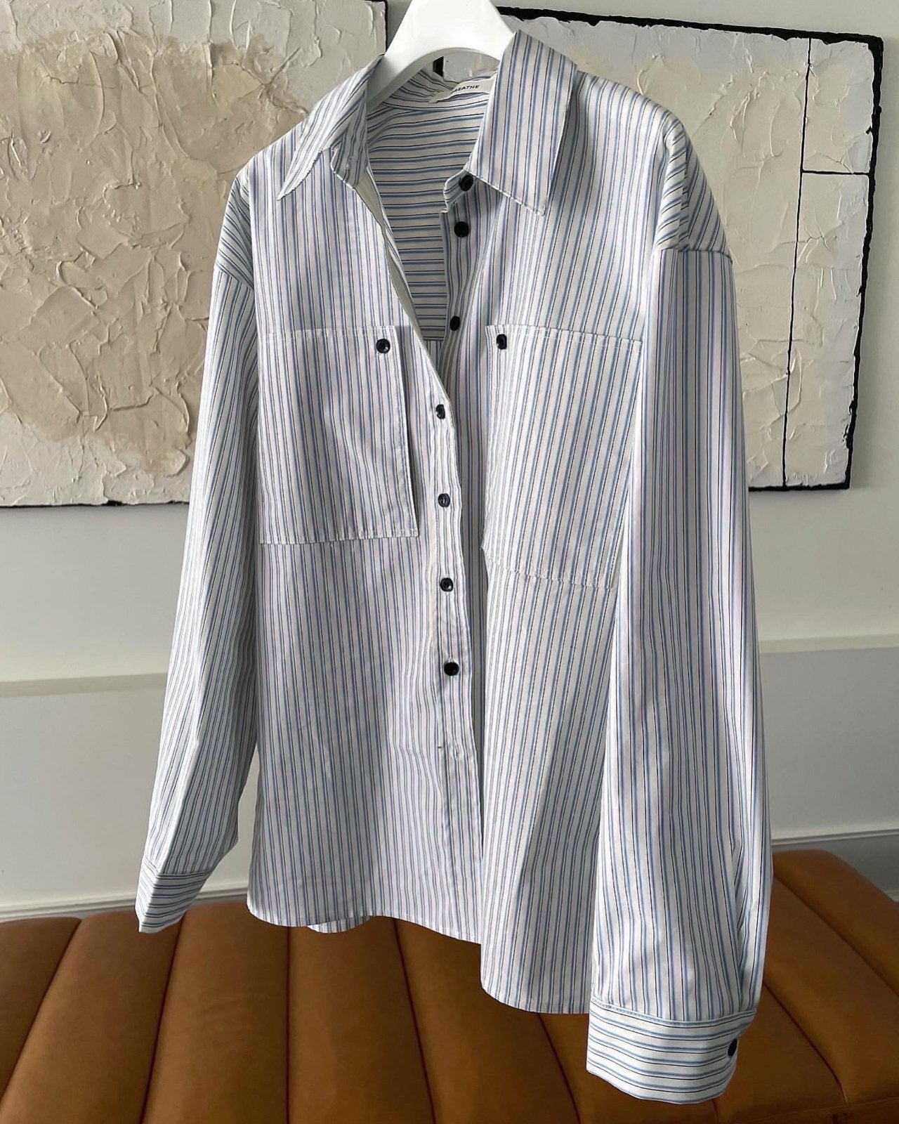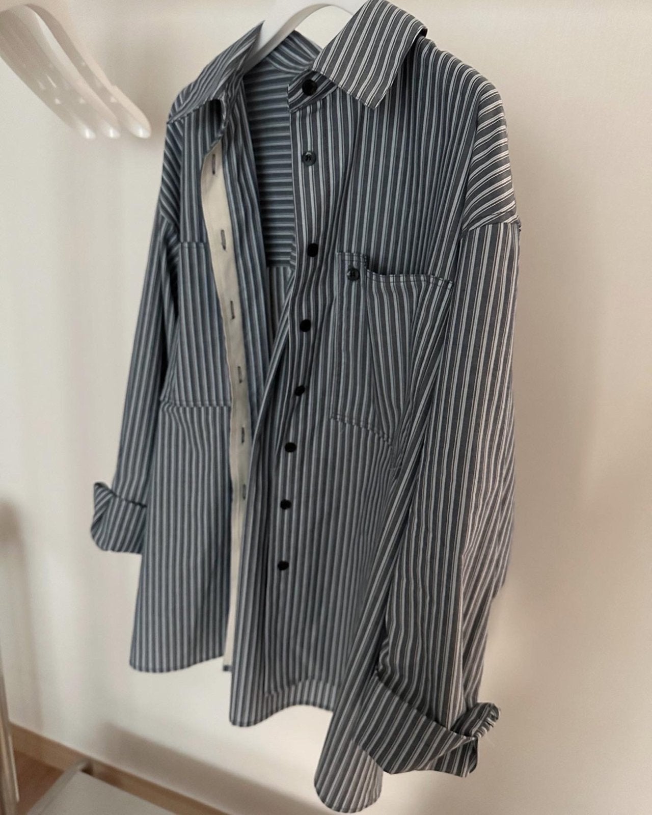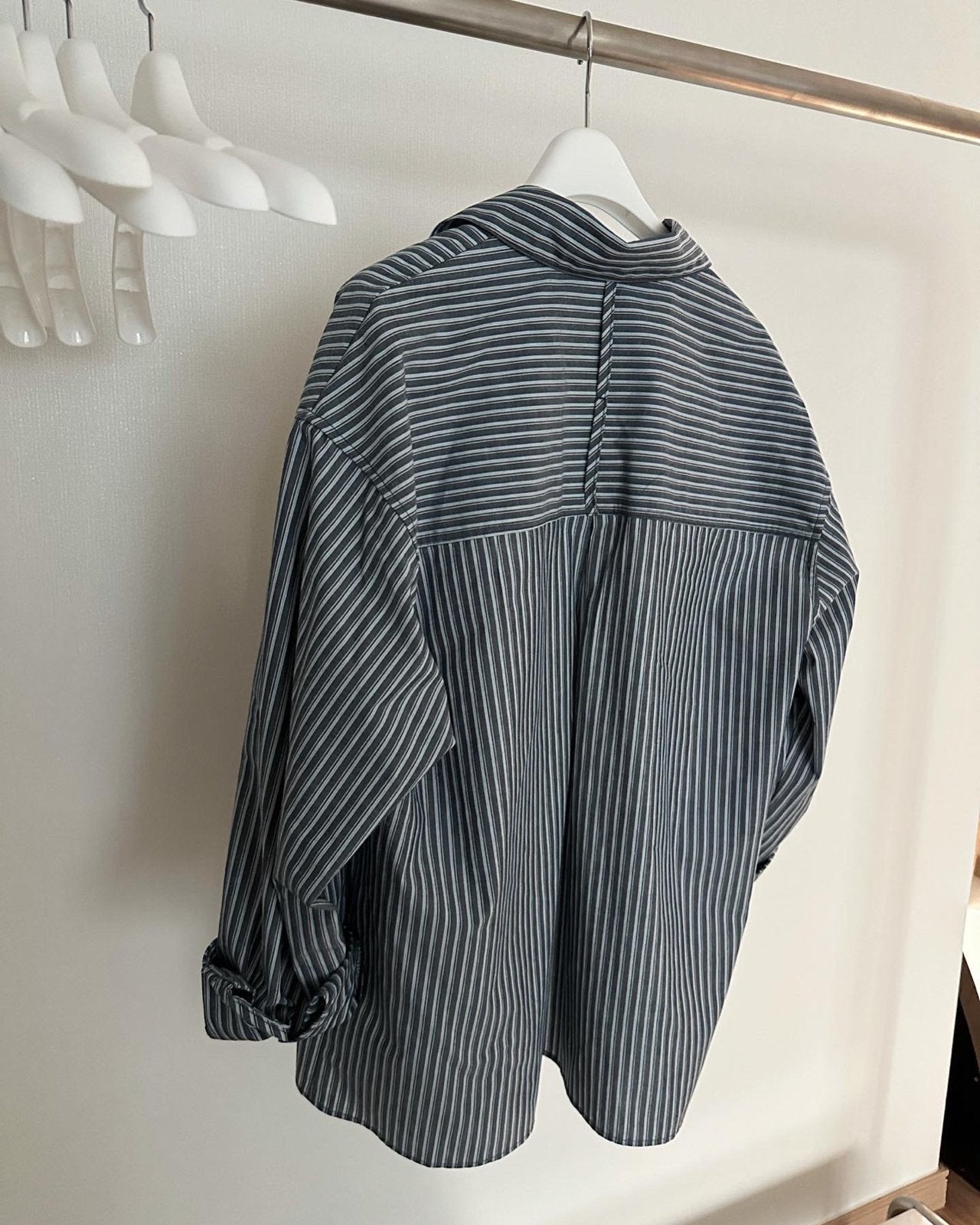 <Abi + Ari> Black Label Patched Pocket Stripe Shirt