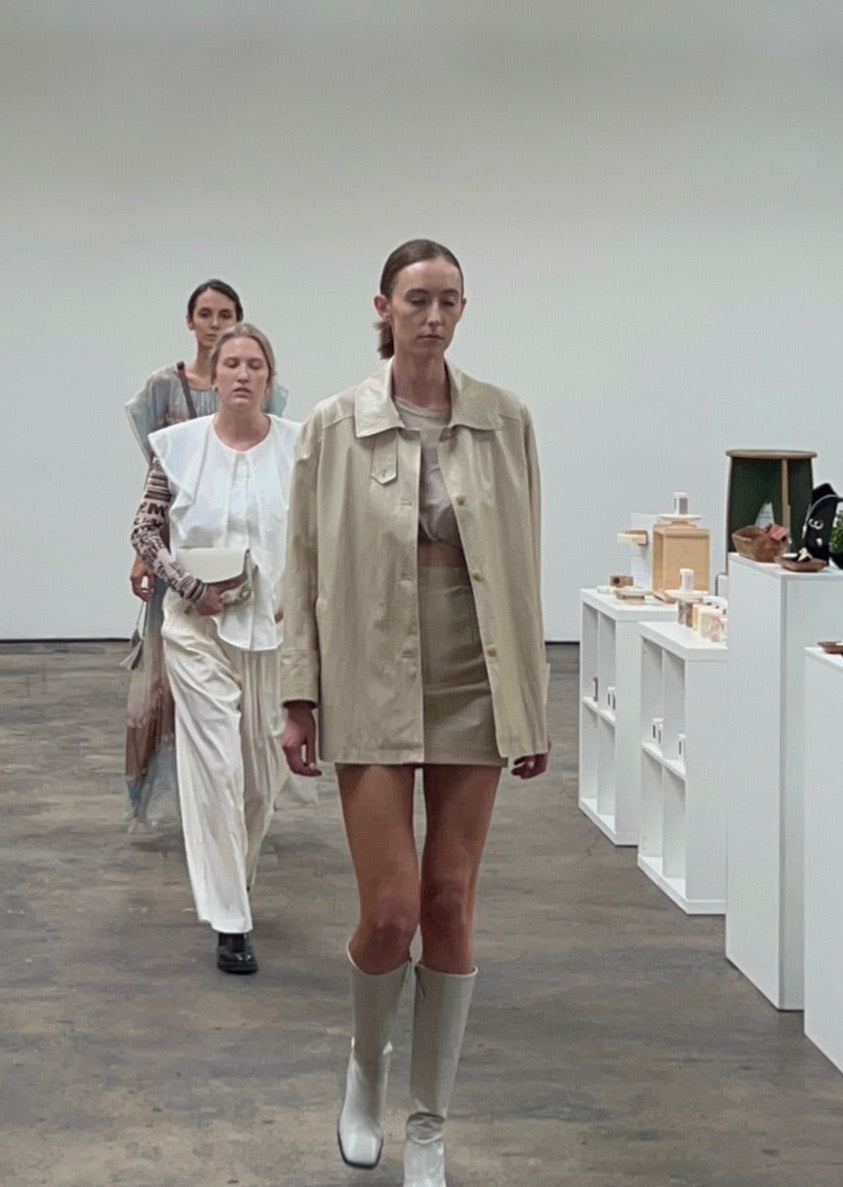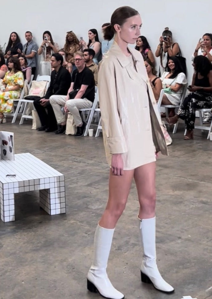 Deconstructed overstock made into reconstructed mini skirt with patchwork sidebands - each skirt has slightly different seam work due to the nature of deconstruct & reconstruction process