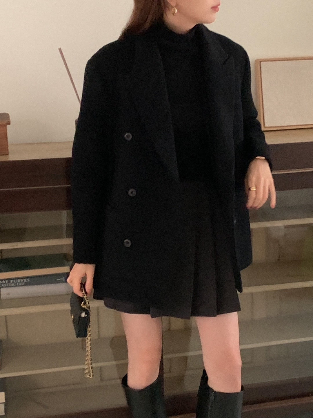 This sophisticated Alpaca Wool Boucle Blazer Coat is tailored from a luxurious, premium blend of Alpaca wool and Boucle fabric. The classic double breasted cut features a dropped notched lapel, and is slightly oversized for a contemporary, chic look. Inside pockets add convenience and extra storage. This coat is perfect for creating a timeless style.