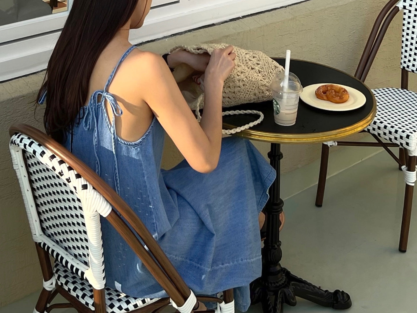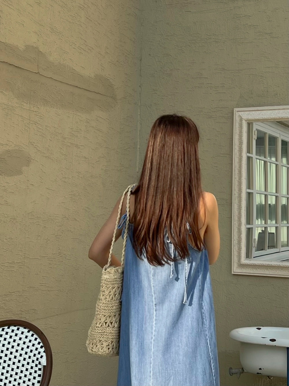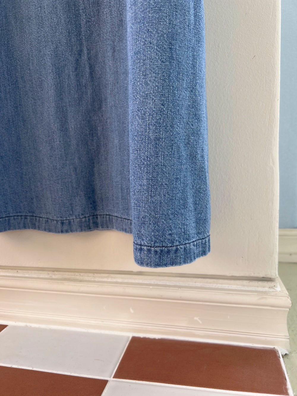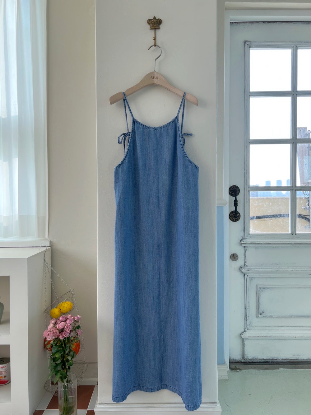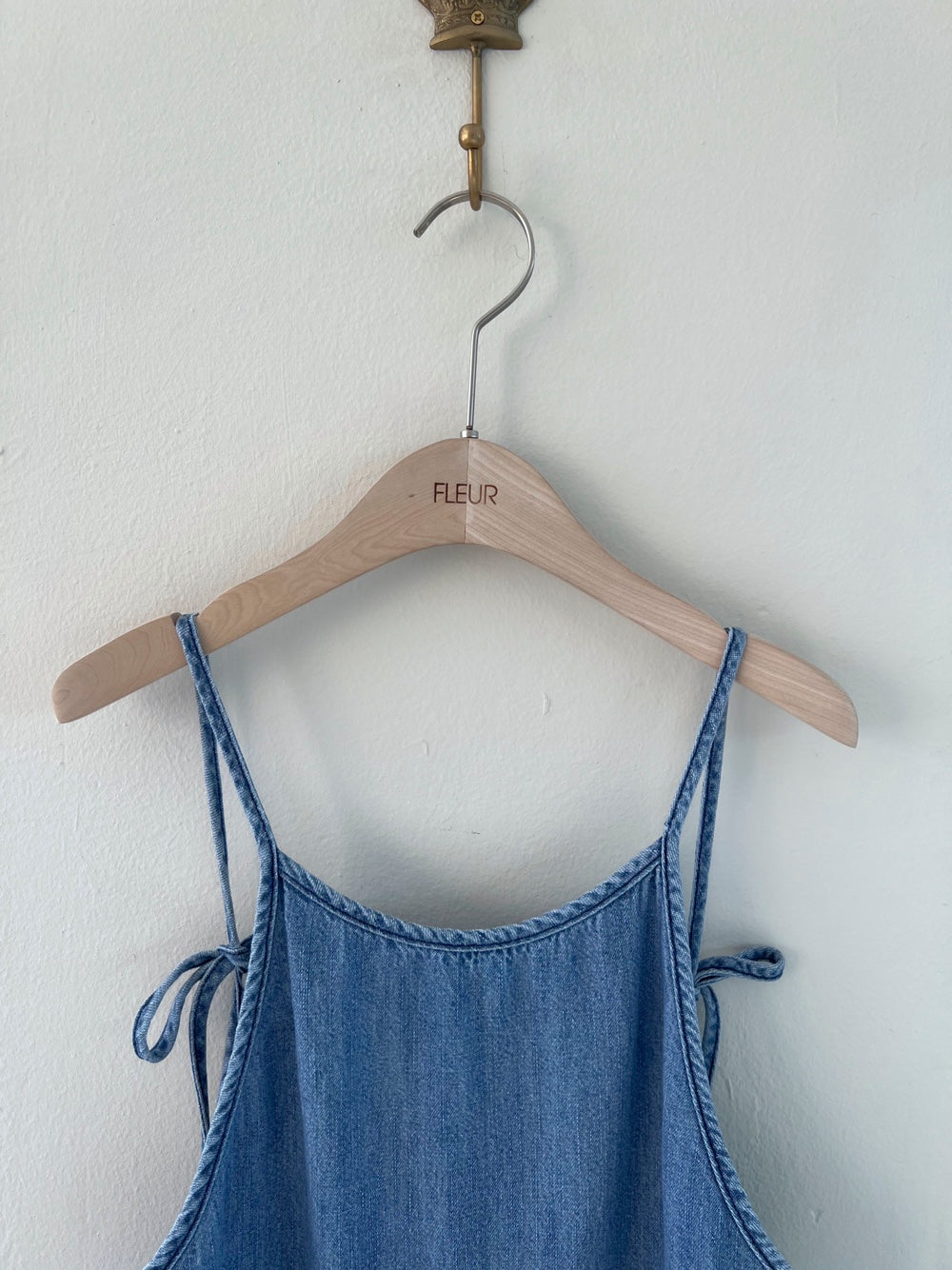 This Denim Maxi Dress is perfect for any occasion. Featuring fluid denim, shoulder ties, strap side pockets, and a slight a-line cut, this dress is comfortable and stylish. Effortlessly transition from day to night in this fashionable and functional piece.