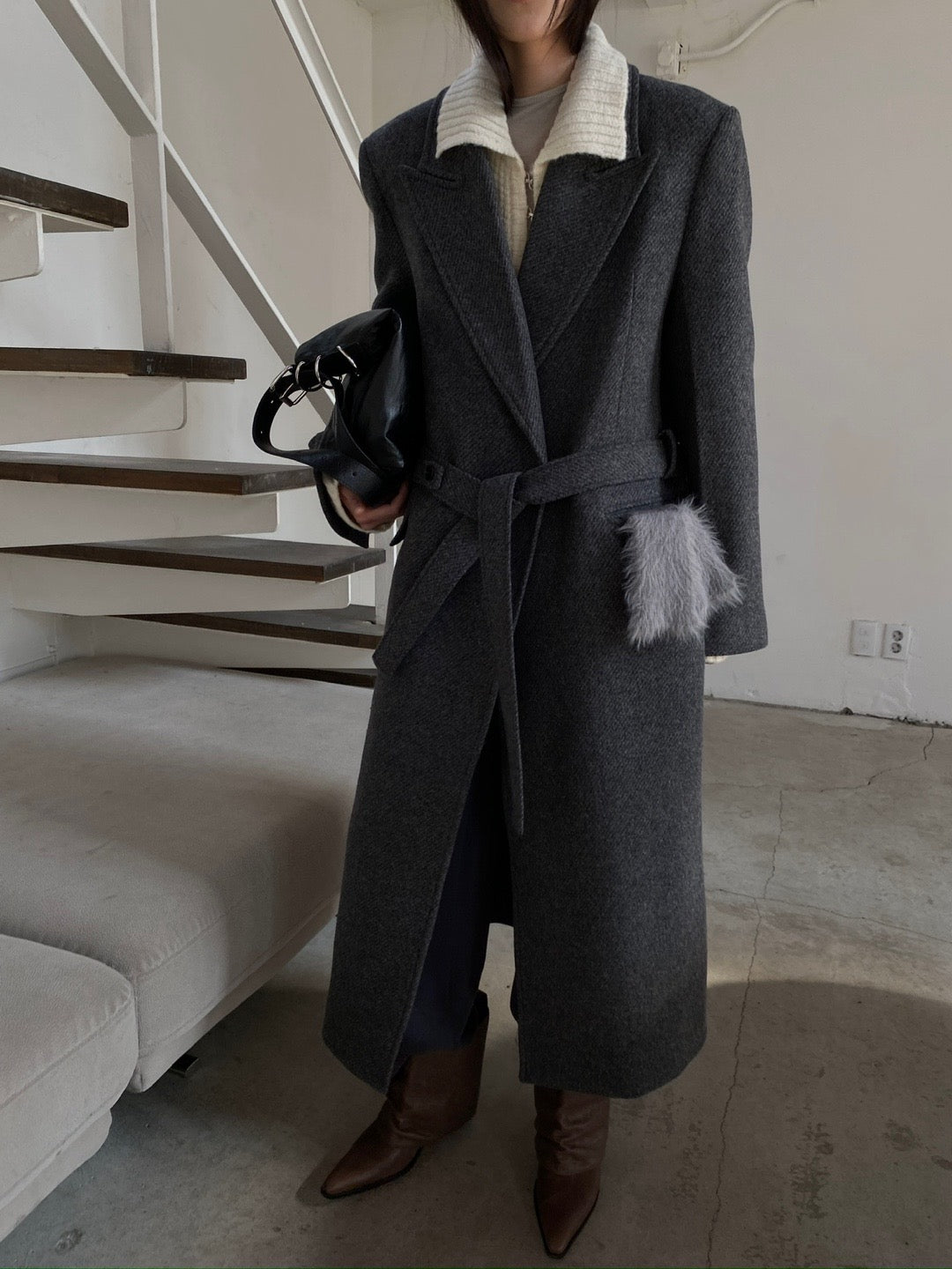 This Baby Alpaca and Wool Maxi Coat is tailored to perfection with a tie closure and beautiful lapels. The wide twill pattern and minimalistic design deliver loads of style, perfect for any special occasion. Added back vent allows for maximum movement, and belt tab adds hint of style beyond its function.