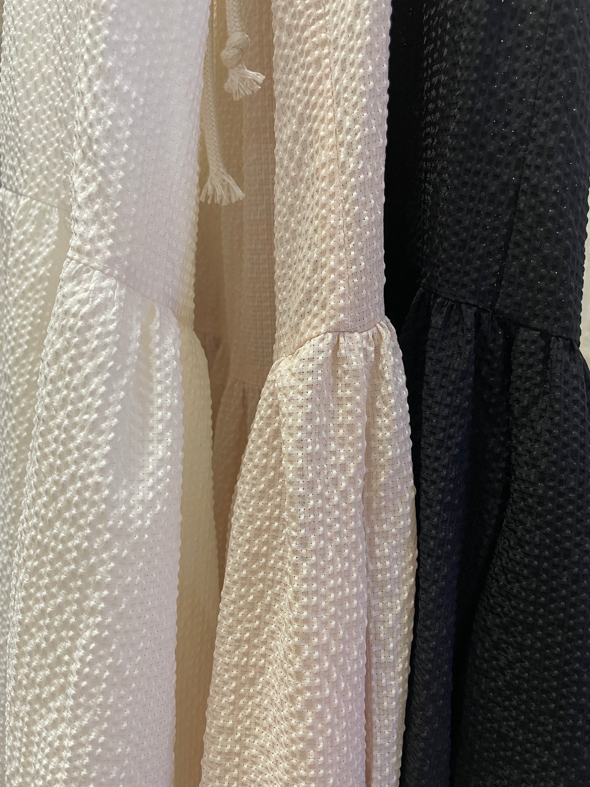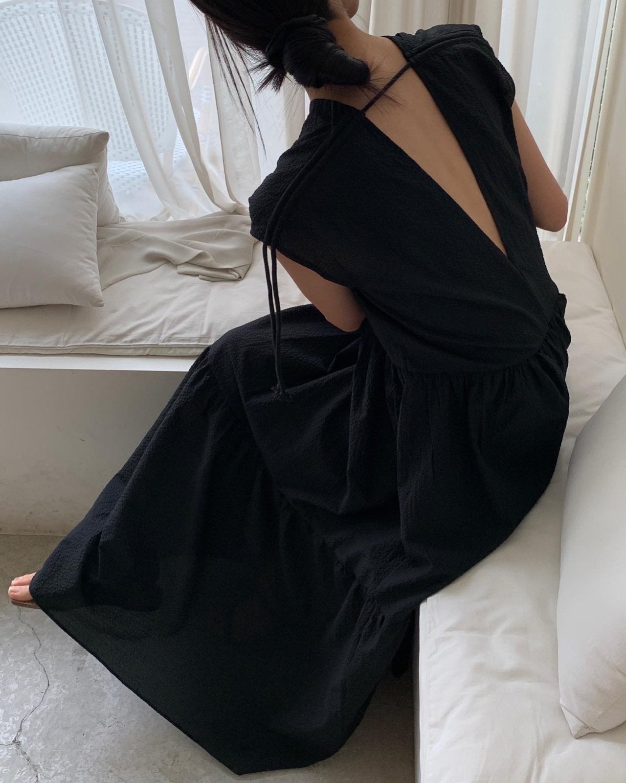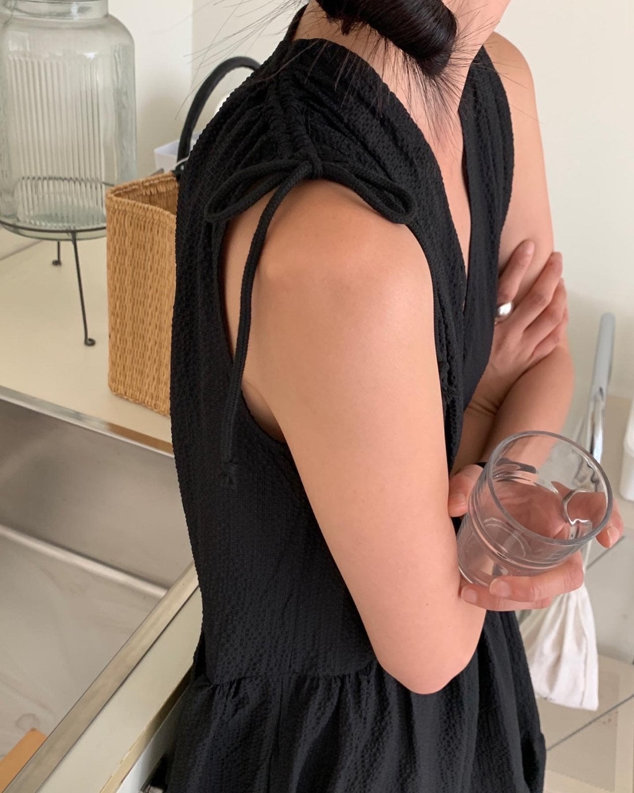 Look and feel your best in this Black Label Rayon Dobby Maxi Dress. Crafted from rayon poly dobby jacquard, the maxi dress is breathable and lightweight, while the rope cord ties at the shoulder provide adjustable width for versatile styling options. This dress also features deep V back, and a sheer silhouette which makes this a perfect effortless yet elegant night out dress. And of course, pockets!