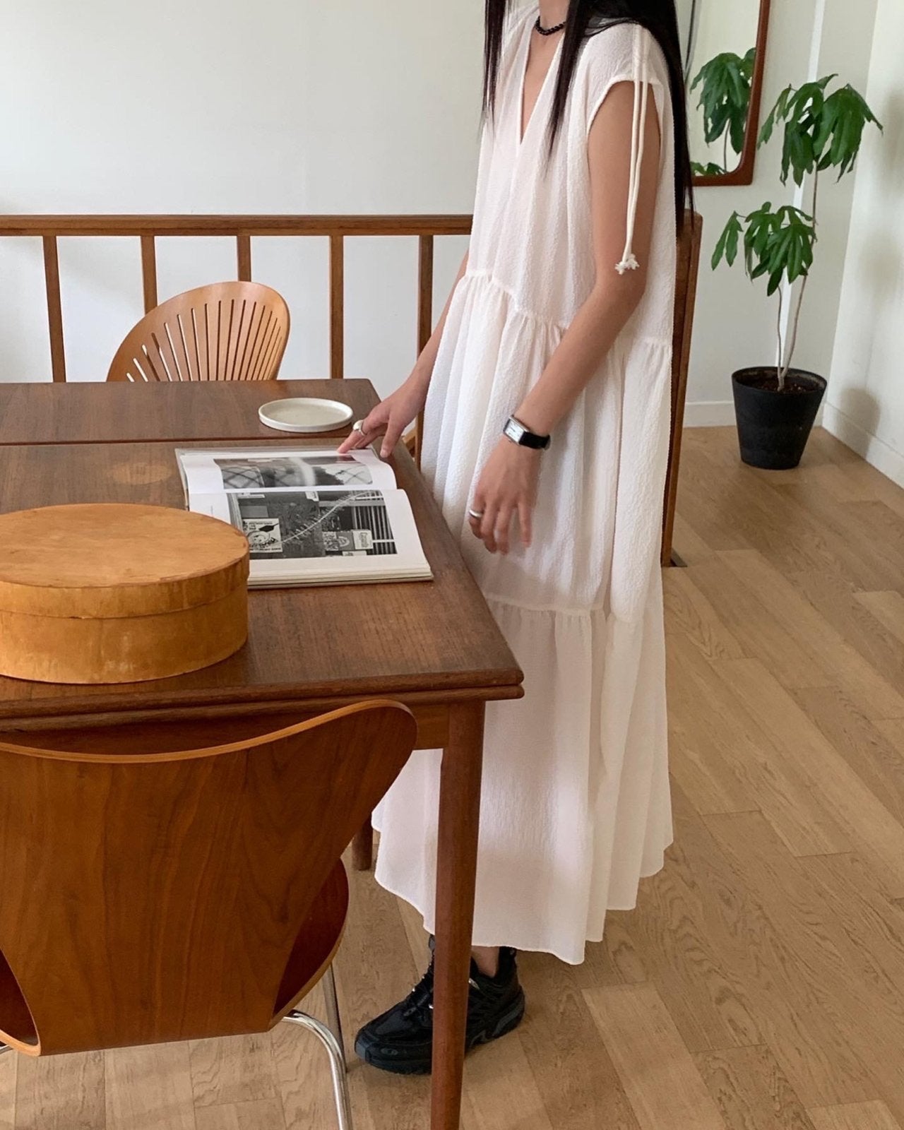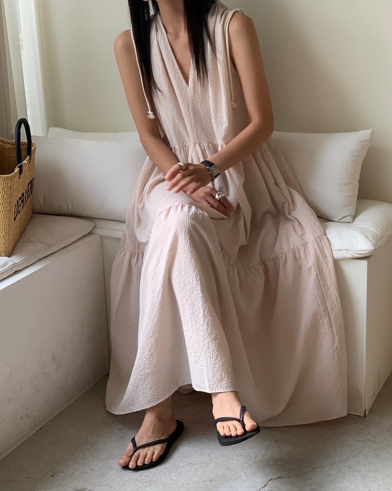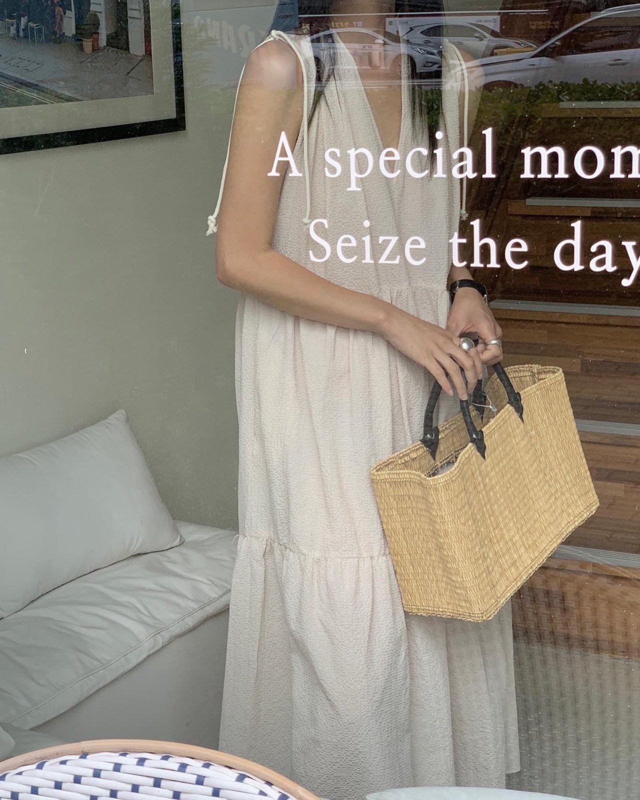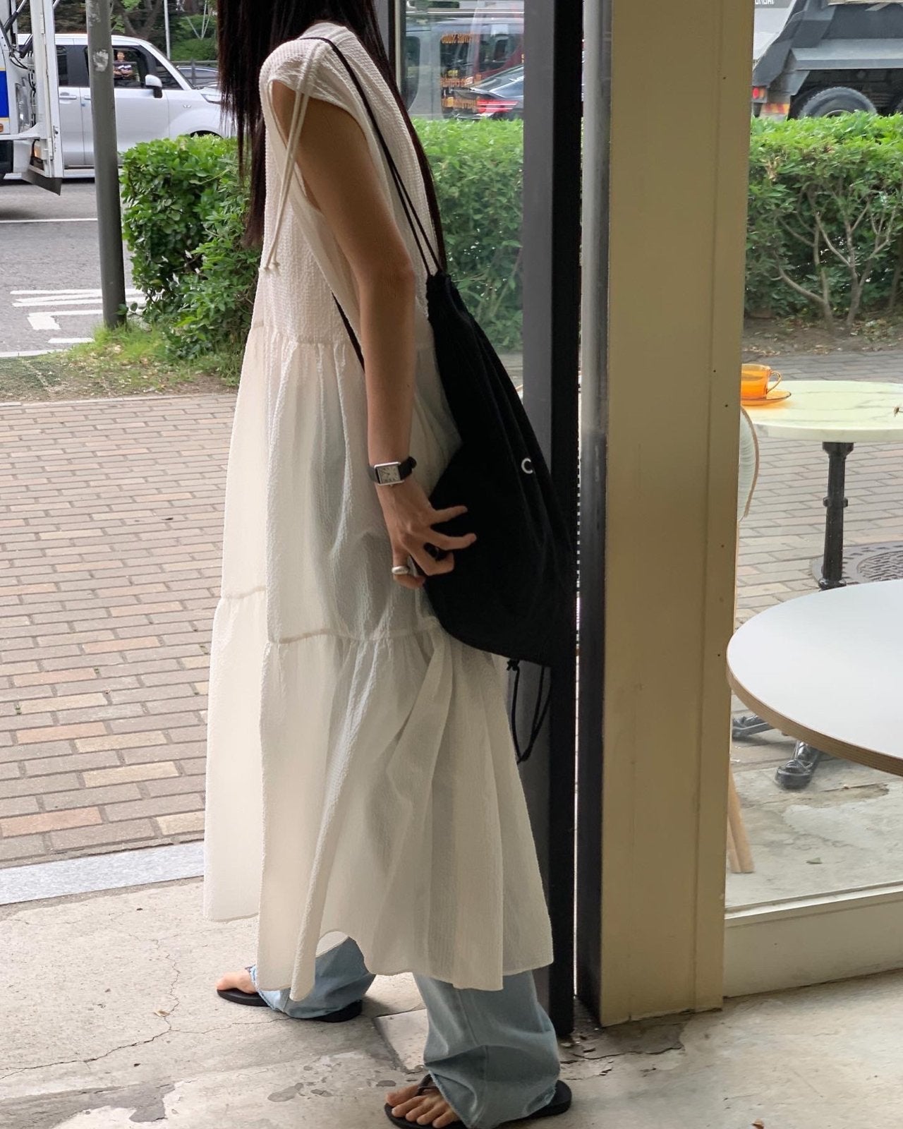 Look and feel your best in this Black Label Rayon Dobby Maxi Dress. Crafted from rayon poly dobby jacquard, the maxi dress is breathable and lightweight, while the rope cord ties at the shoulder provide adjustable width for versatile styling options. This dress also features deep V back, and a sheer silhouette which makes this a perfect effortless yet elegant night out dress. And of course, pockets!