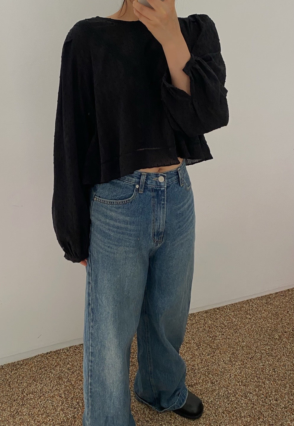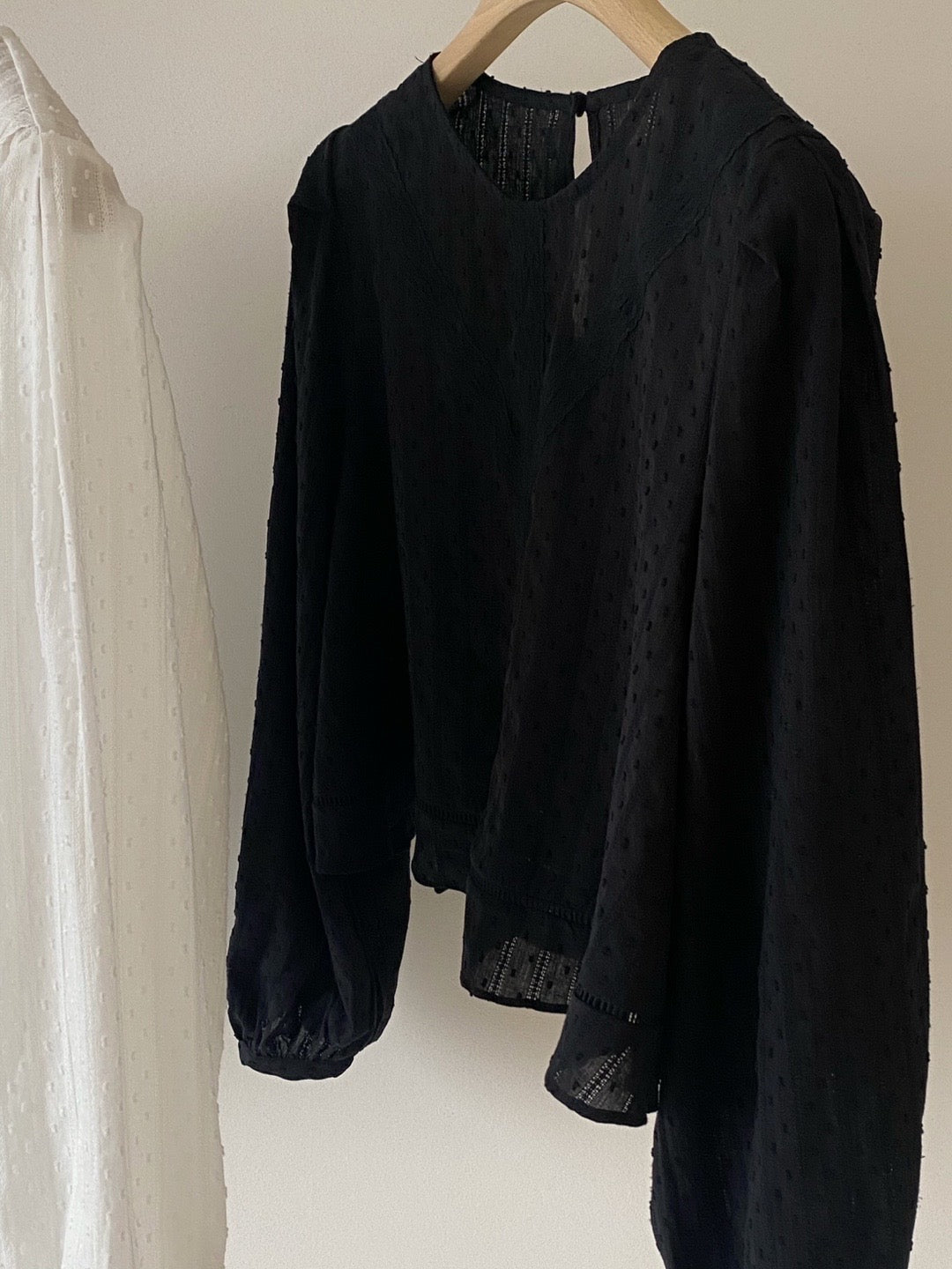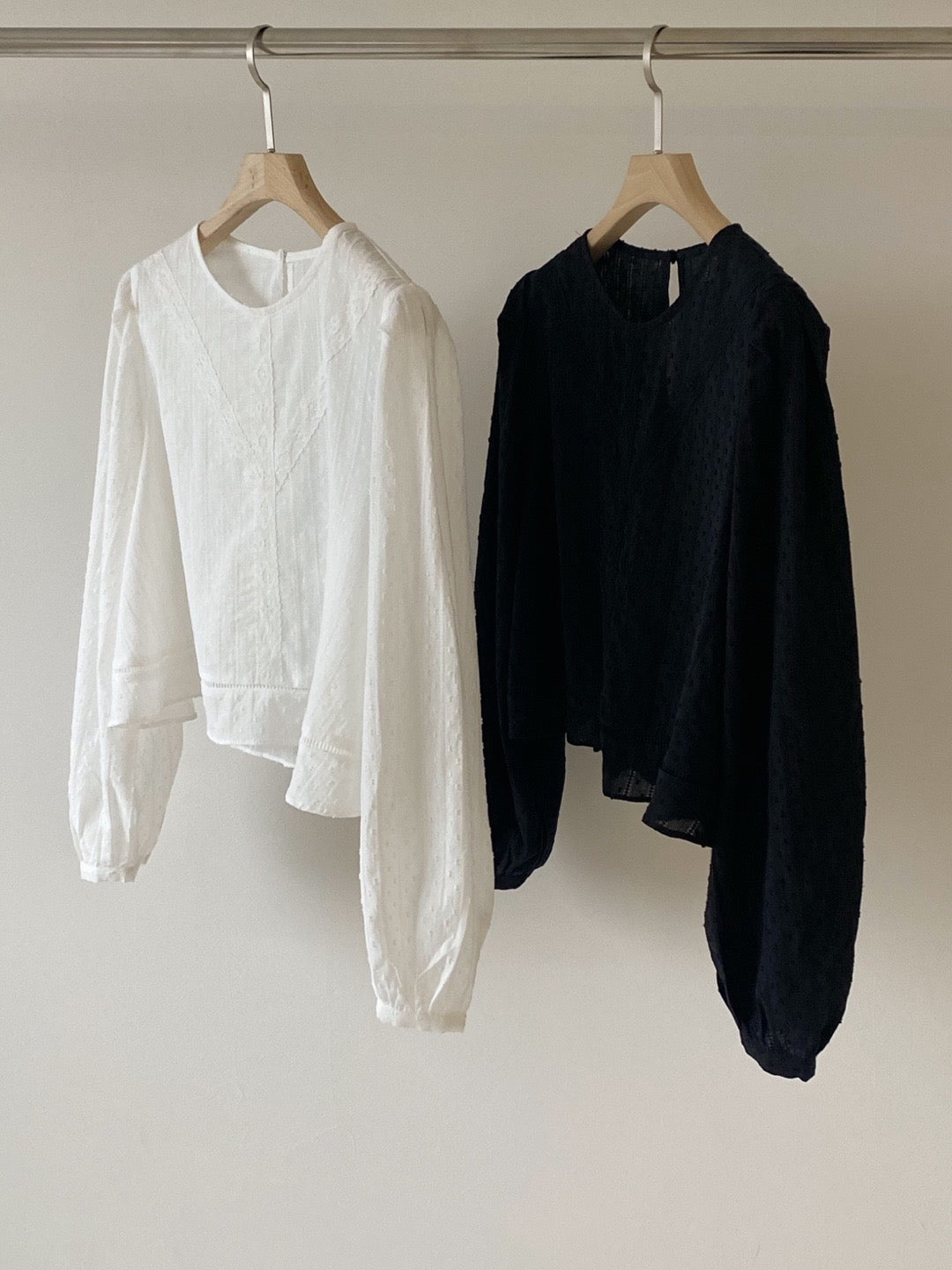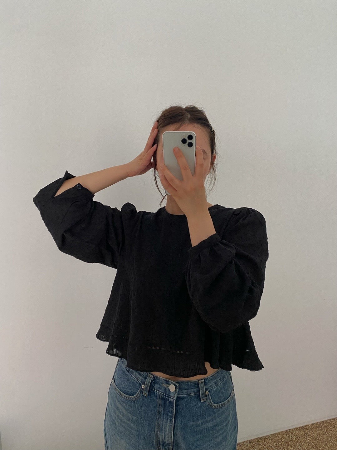 This cotton dobby blouse is both feminine and fun with its delicate lace trim. Versatile and perfect for any occasion, it is a great addition to your wardrobe for styling through all seasons. The cropped length and demure volume sleeves add an extra touch of style.