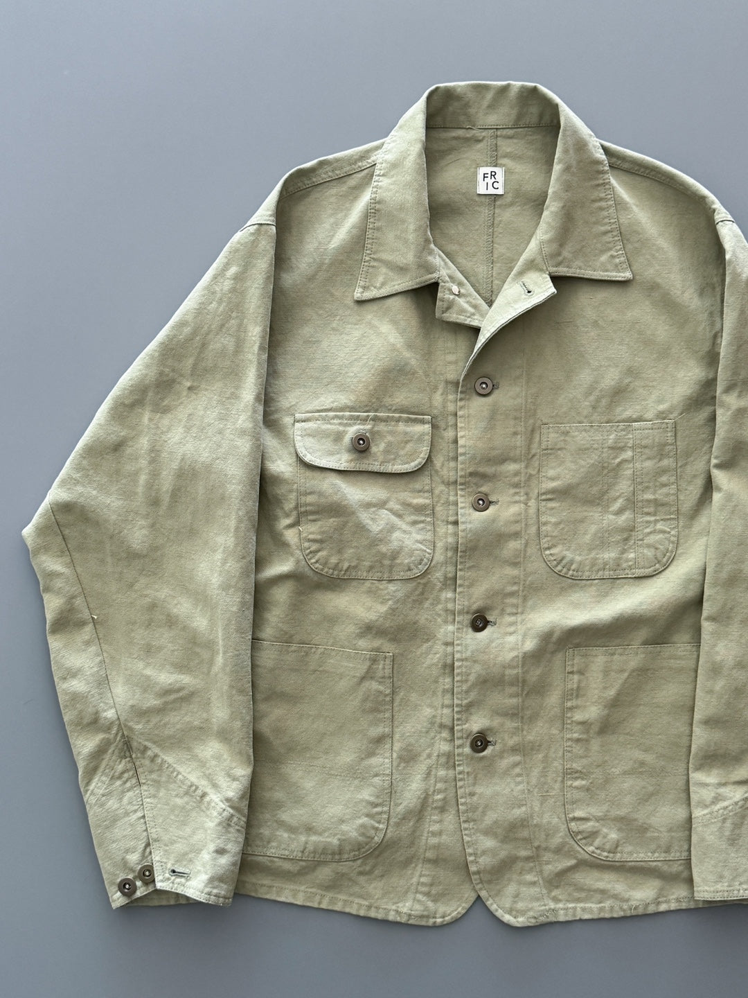 Expertly crafted with a blend of cotton and linen, this work jacket offers a relaxed fit for optimal comfort. Featuring classic work jacket details, multiple pockets, and perfect below hip length. The sleeves have curved seams and adjustable tap buttons for easy roll up. It is a versatile outer must-have that pairs seamlessly with any outfit.
