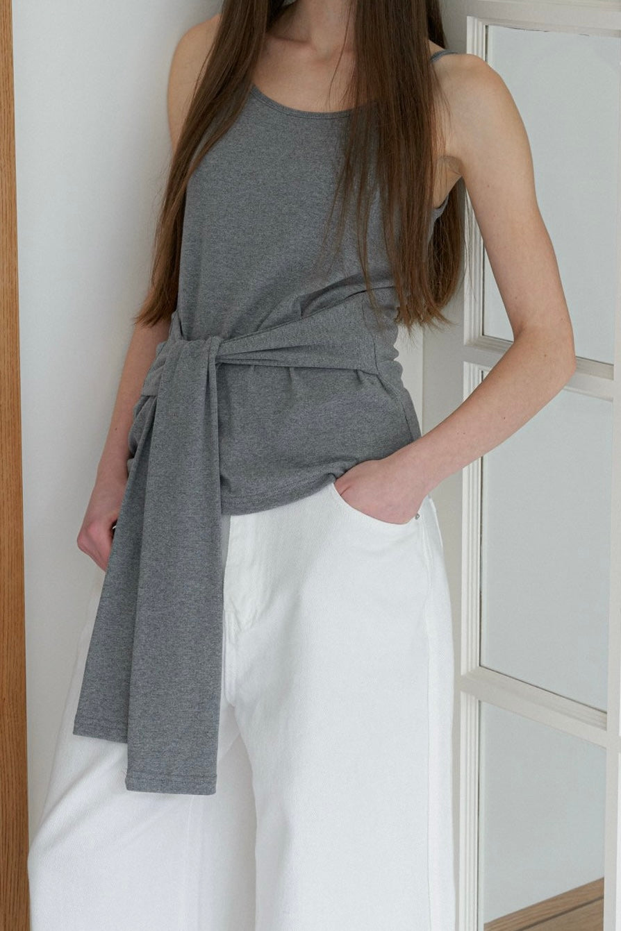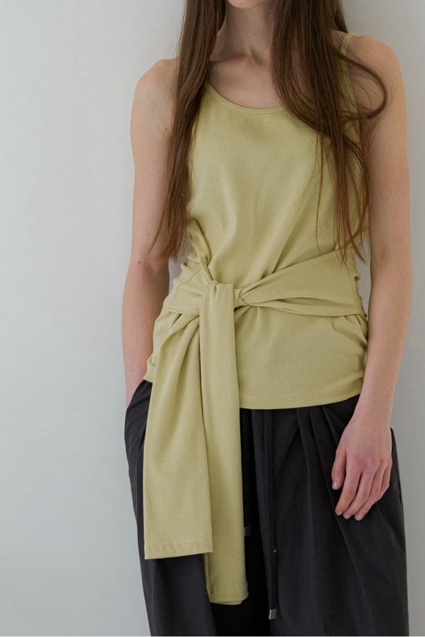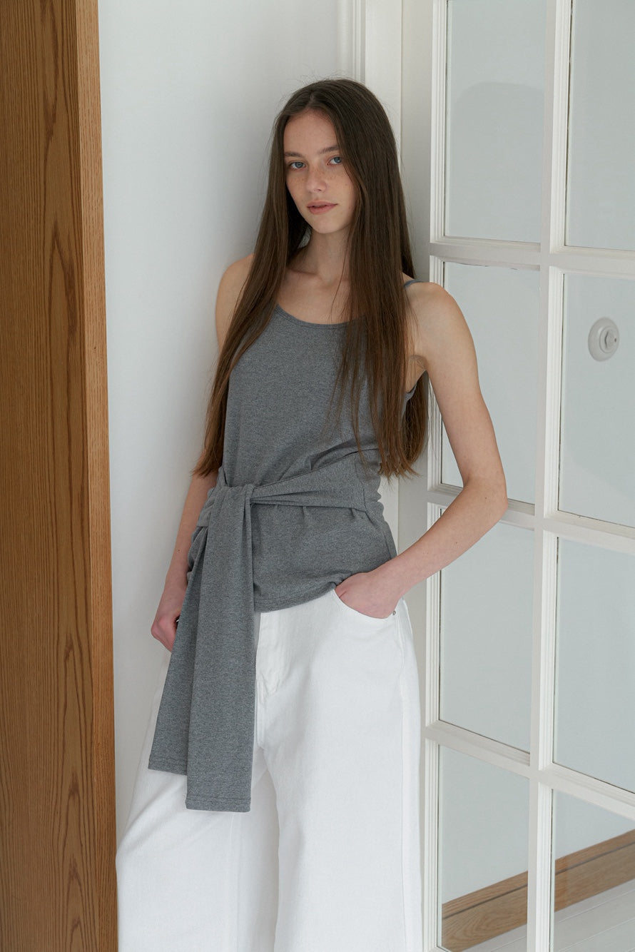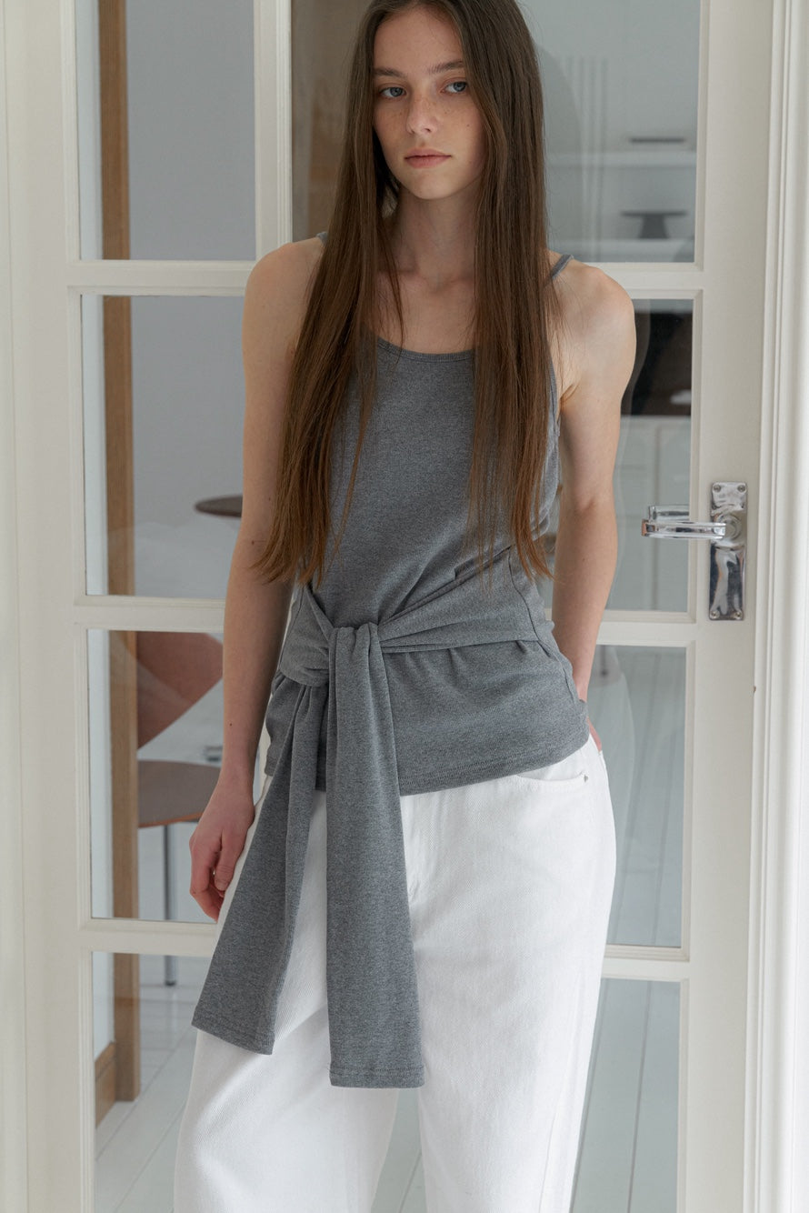 Crafted from a soft and resilient cotton rib jersey, this cotton blend camisole has a beautiful u neck and a waist tie for a versatile look. Perfect for layering or worn on its own, it adds a touch of sophistication to your casual essentials.