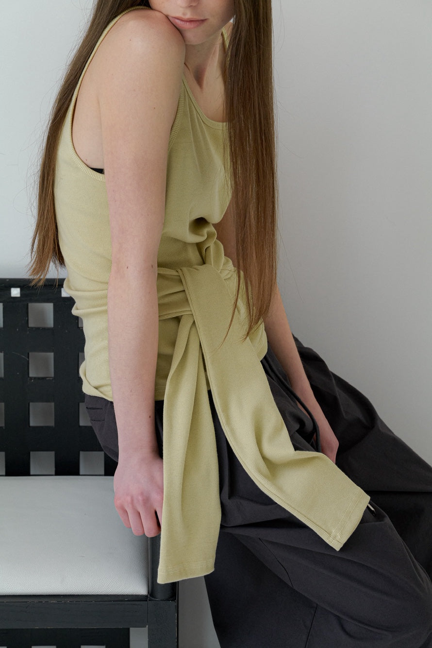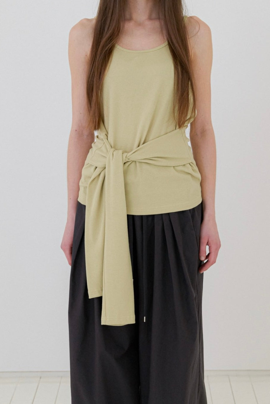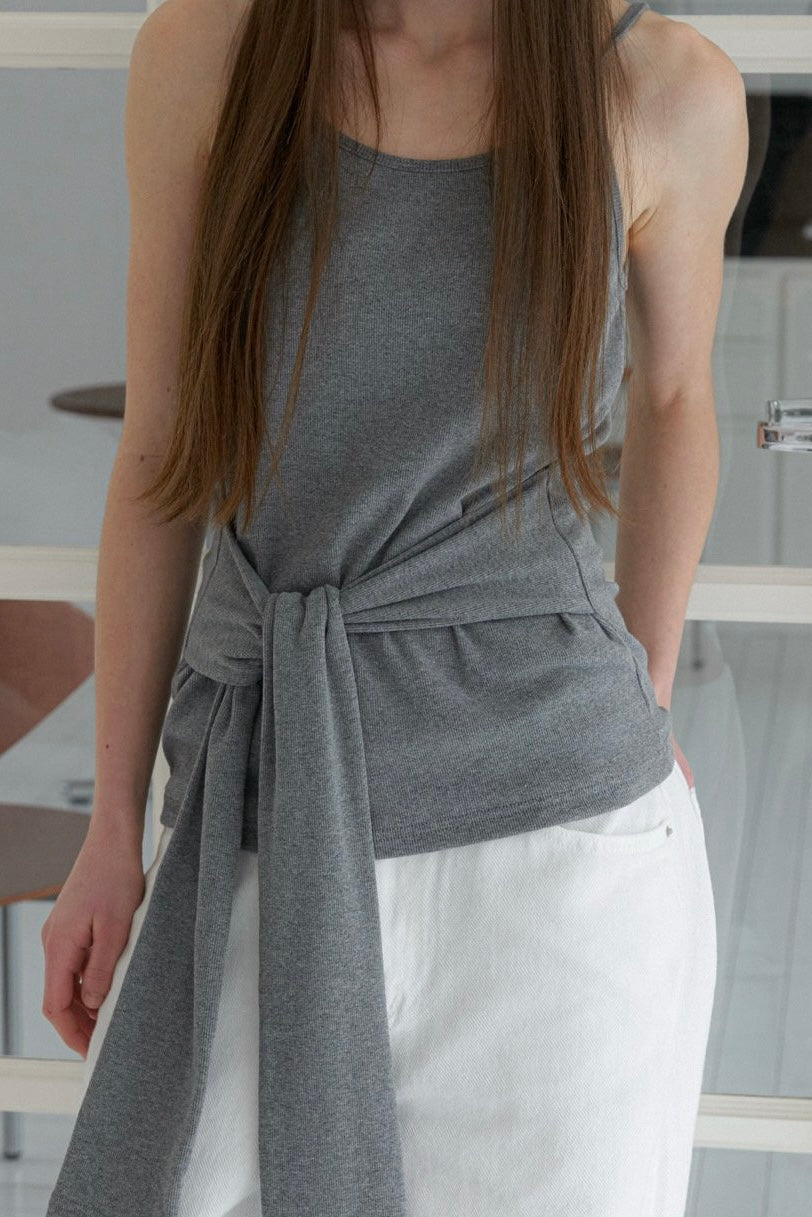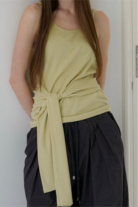 Crafted from a soft and resilient cotton rib jersey, this cotton blend camisole has a beautiful u neck and a waist tie for a versatile look. Perfect for layering or worn on its own, it adds a touch of sophistication to your casual essentials.