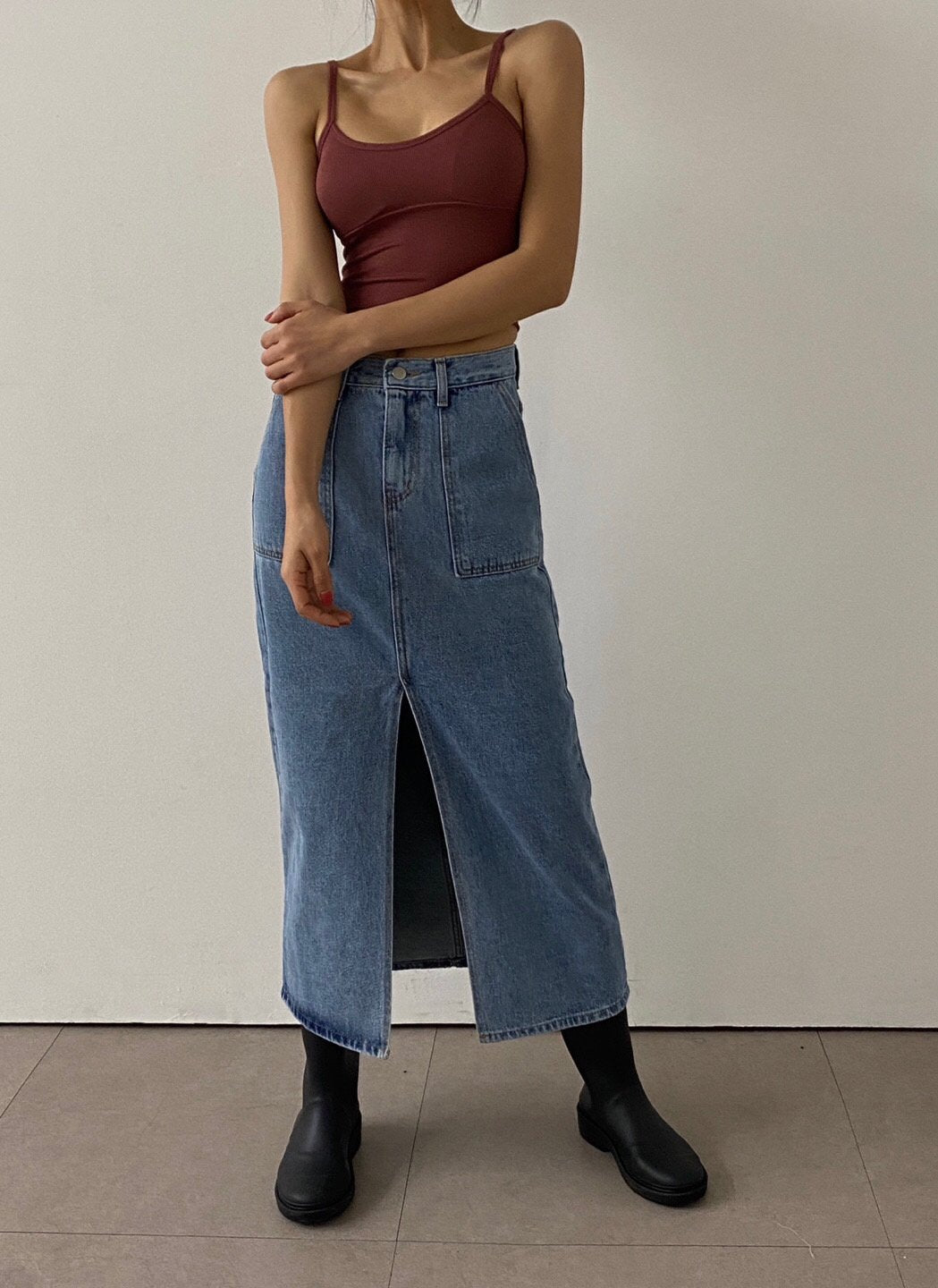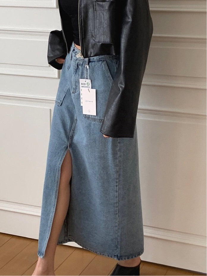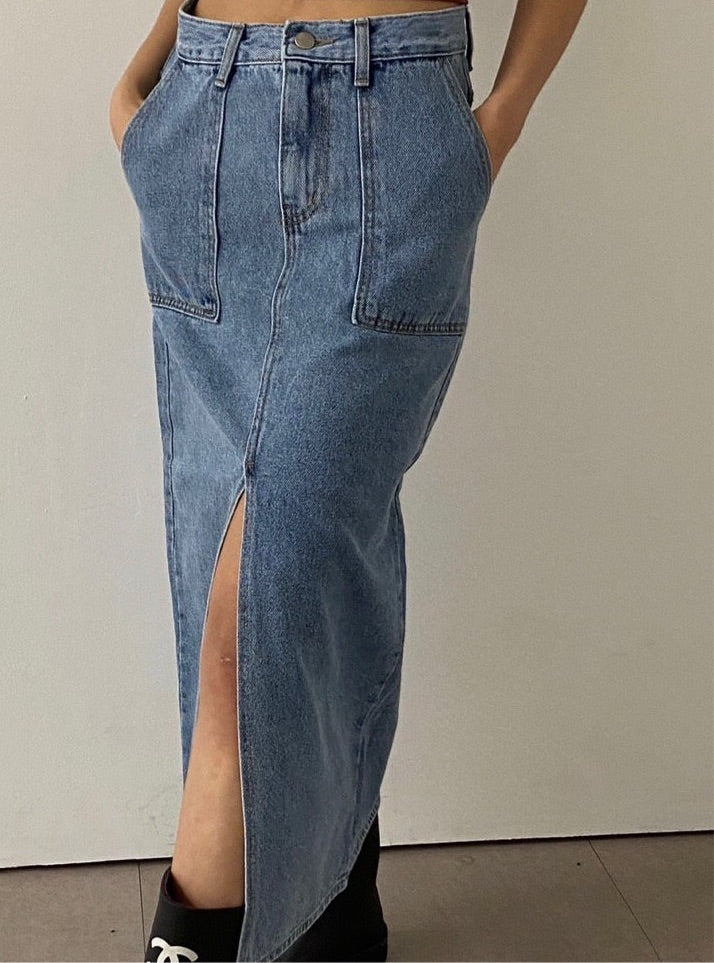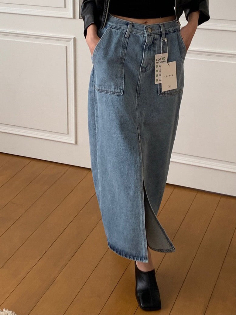 ✨Eco-Washed✨Midi Denim Skirt