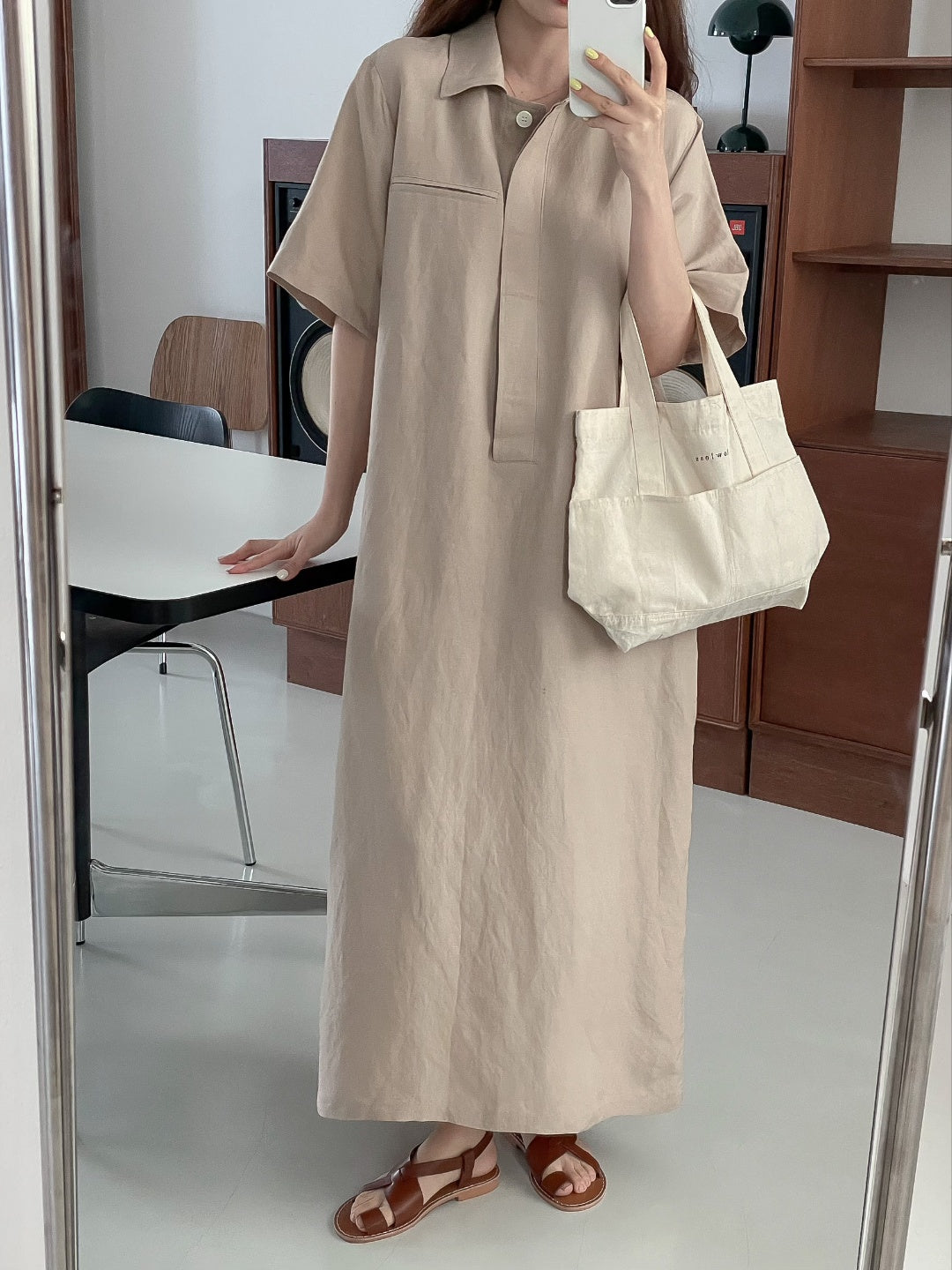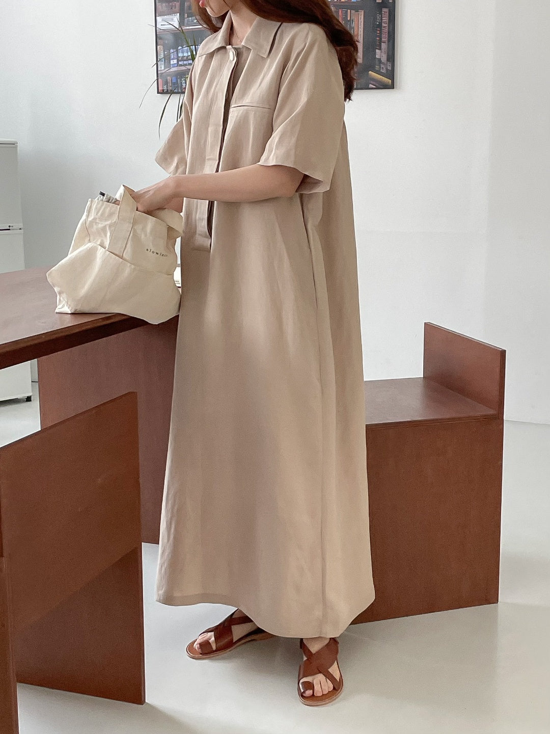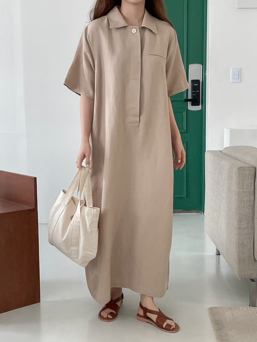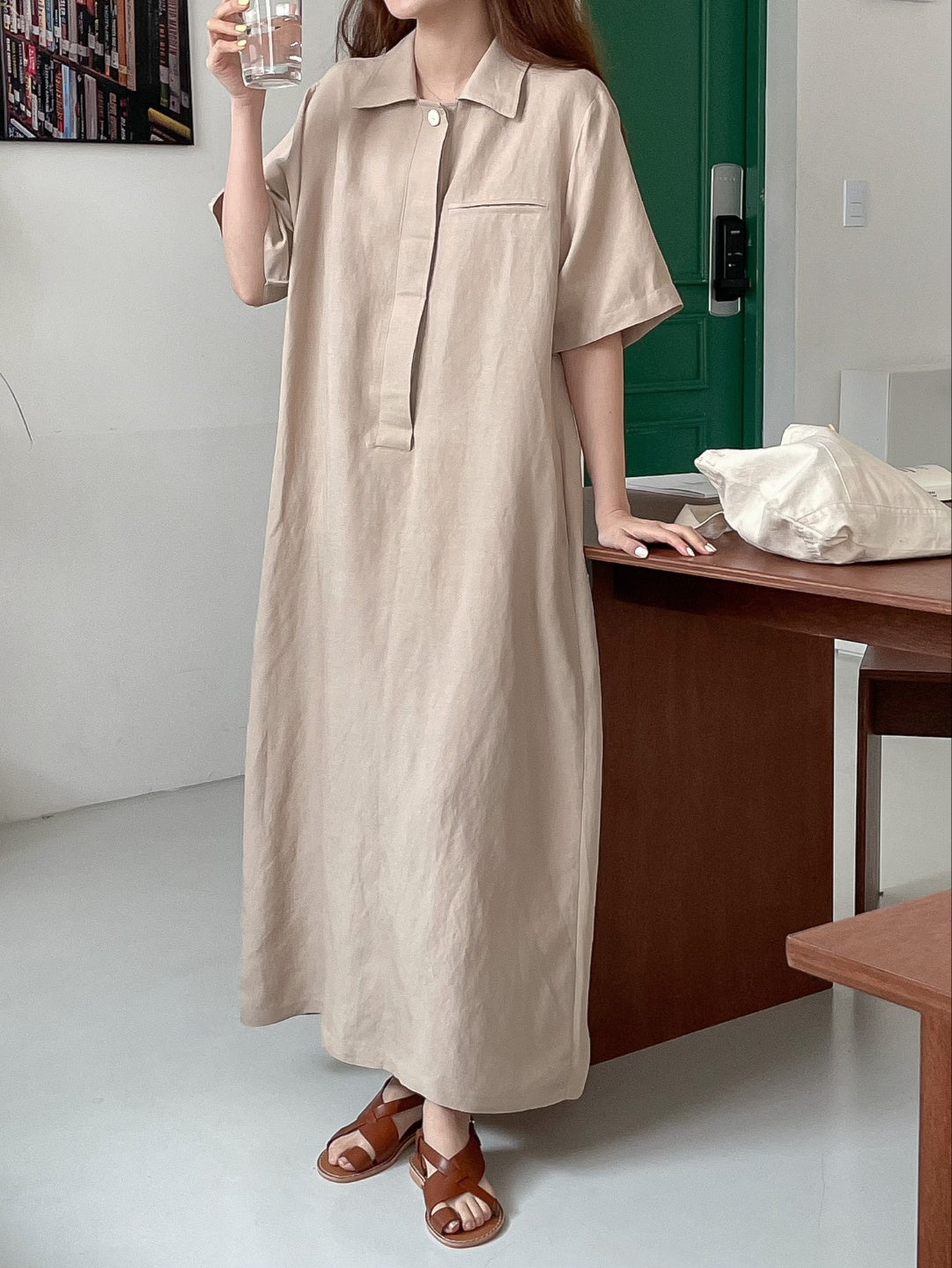 A-line shift maxi dress in cool touch linen blend