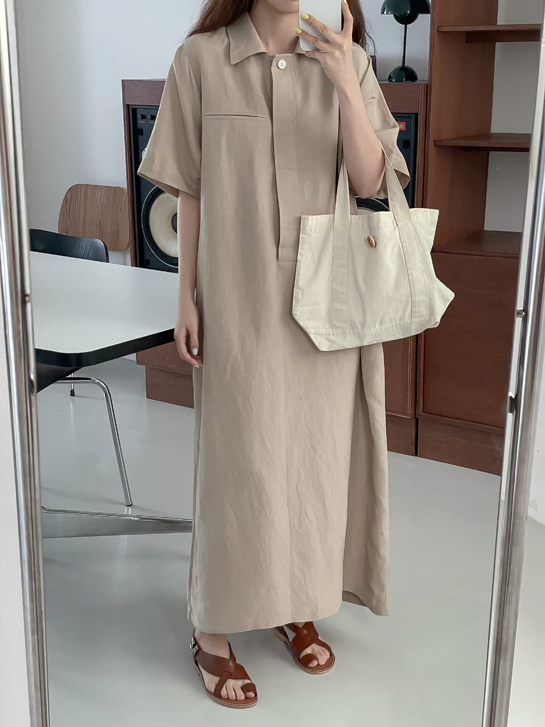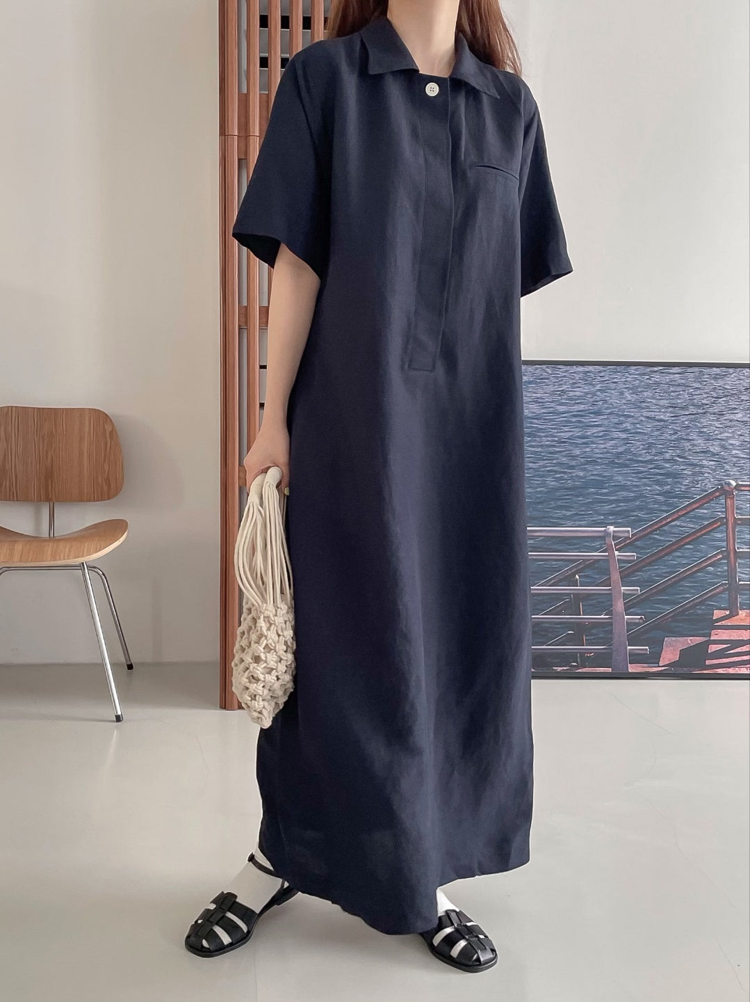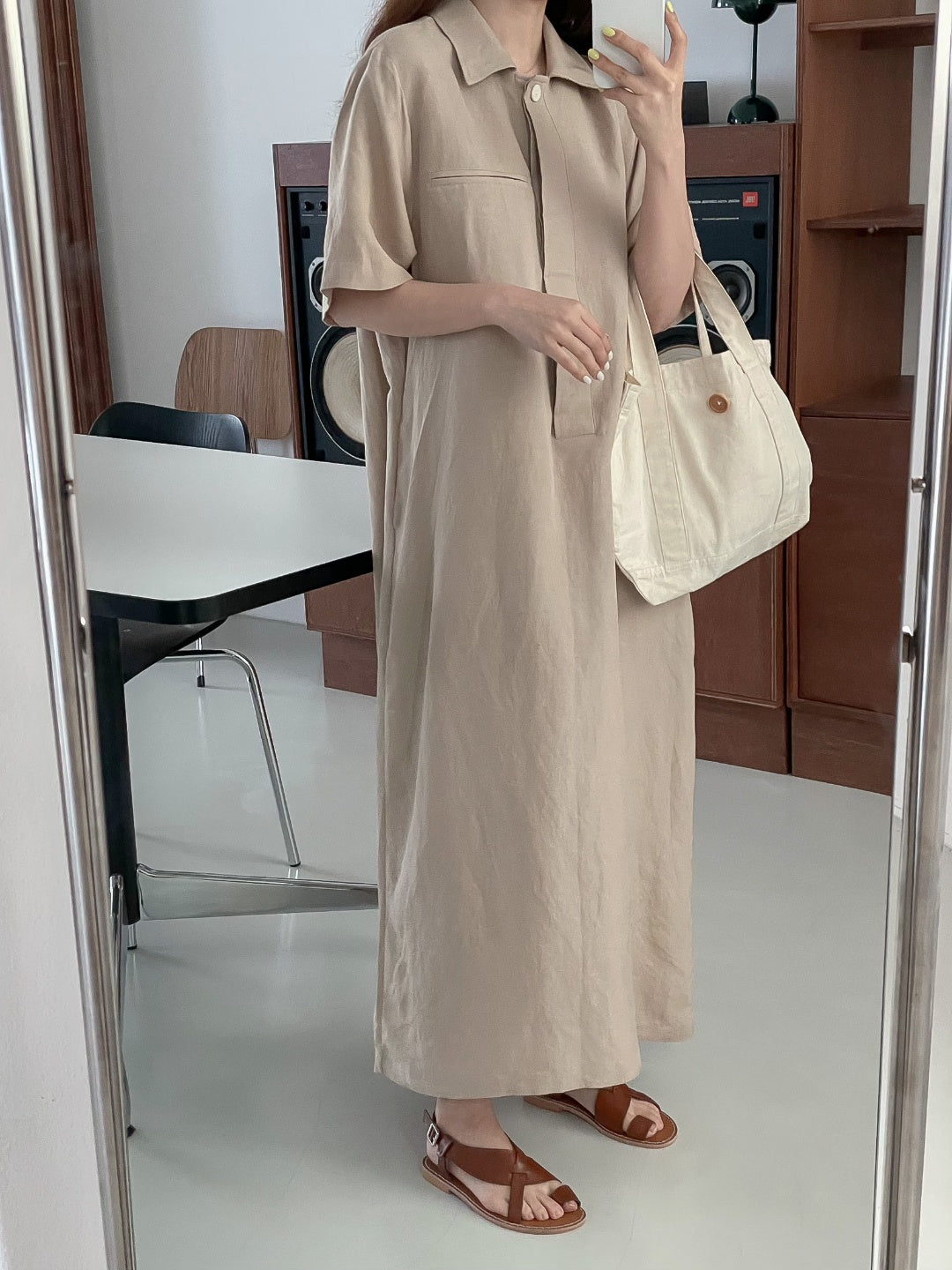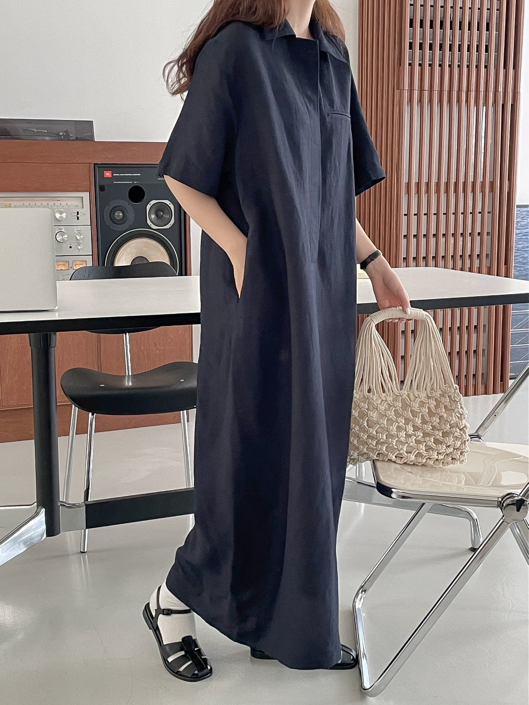 A-line shift maxi dress in cool touch linen blend