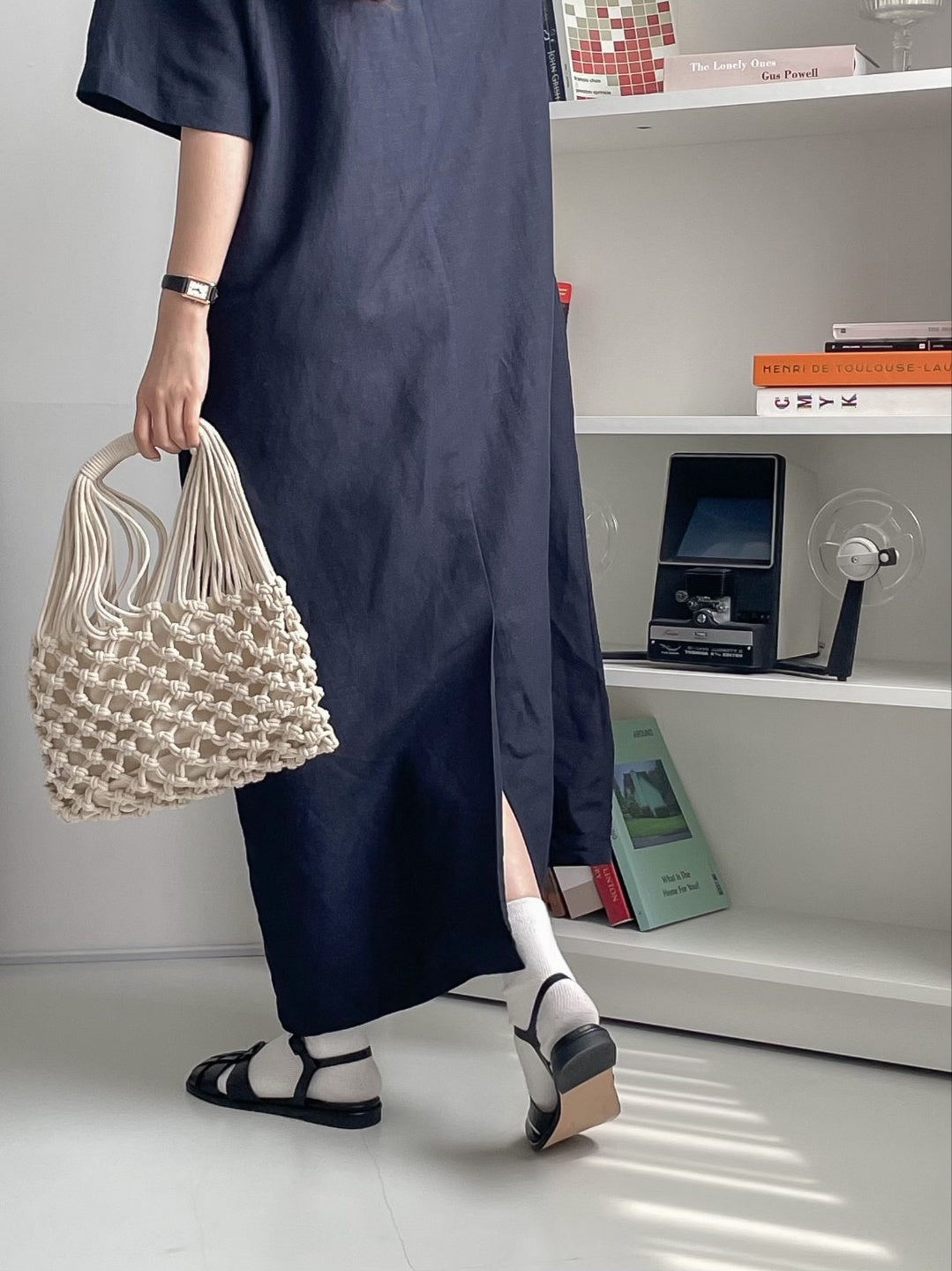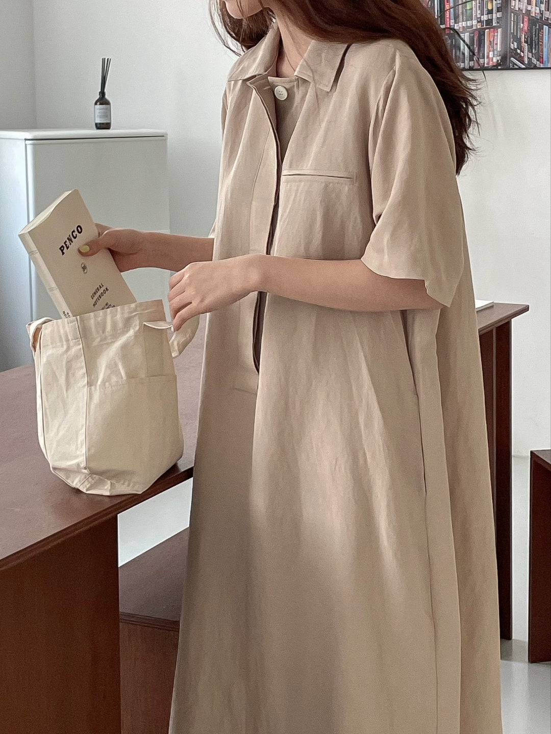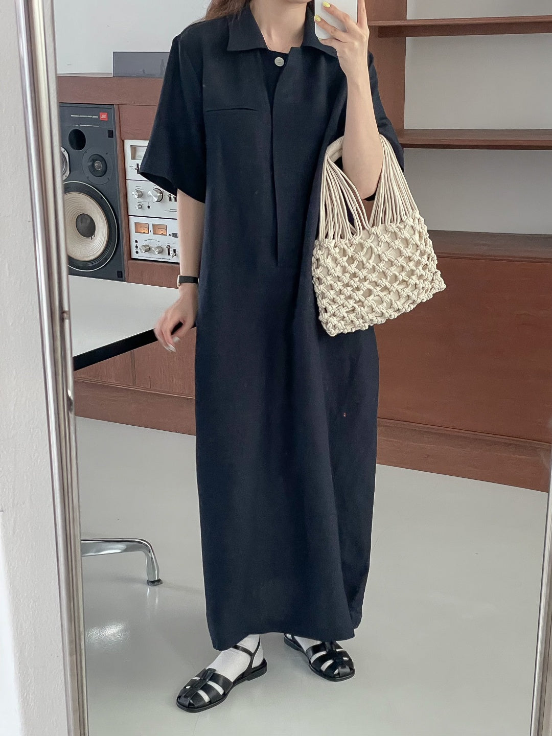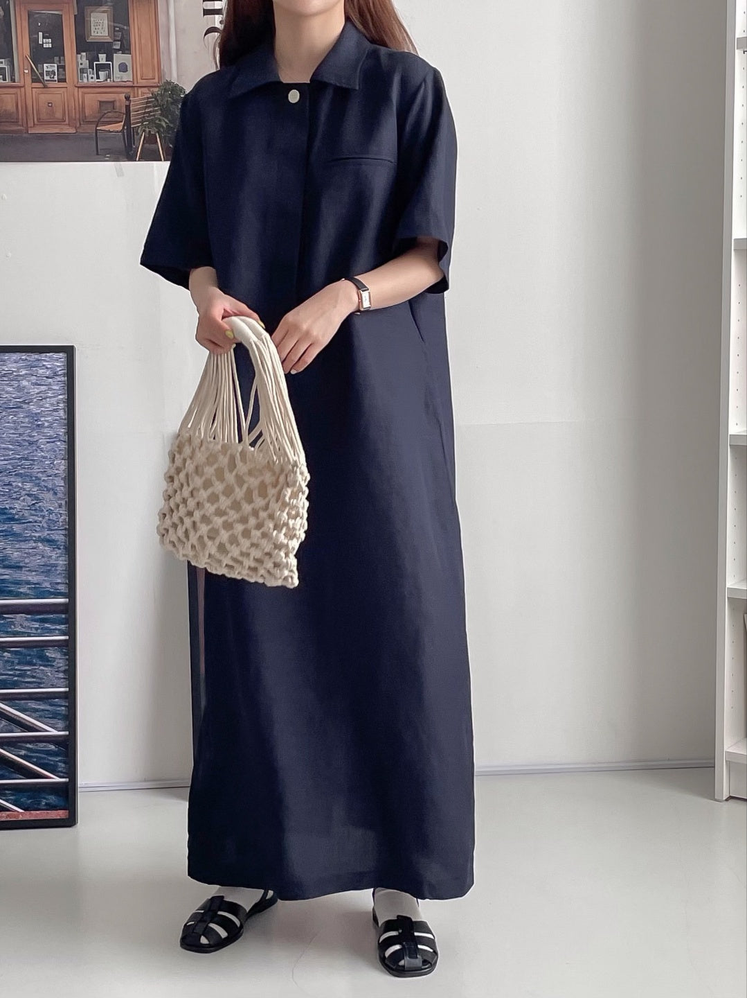 A-line shift maxi dress in cool touch linen blend