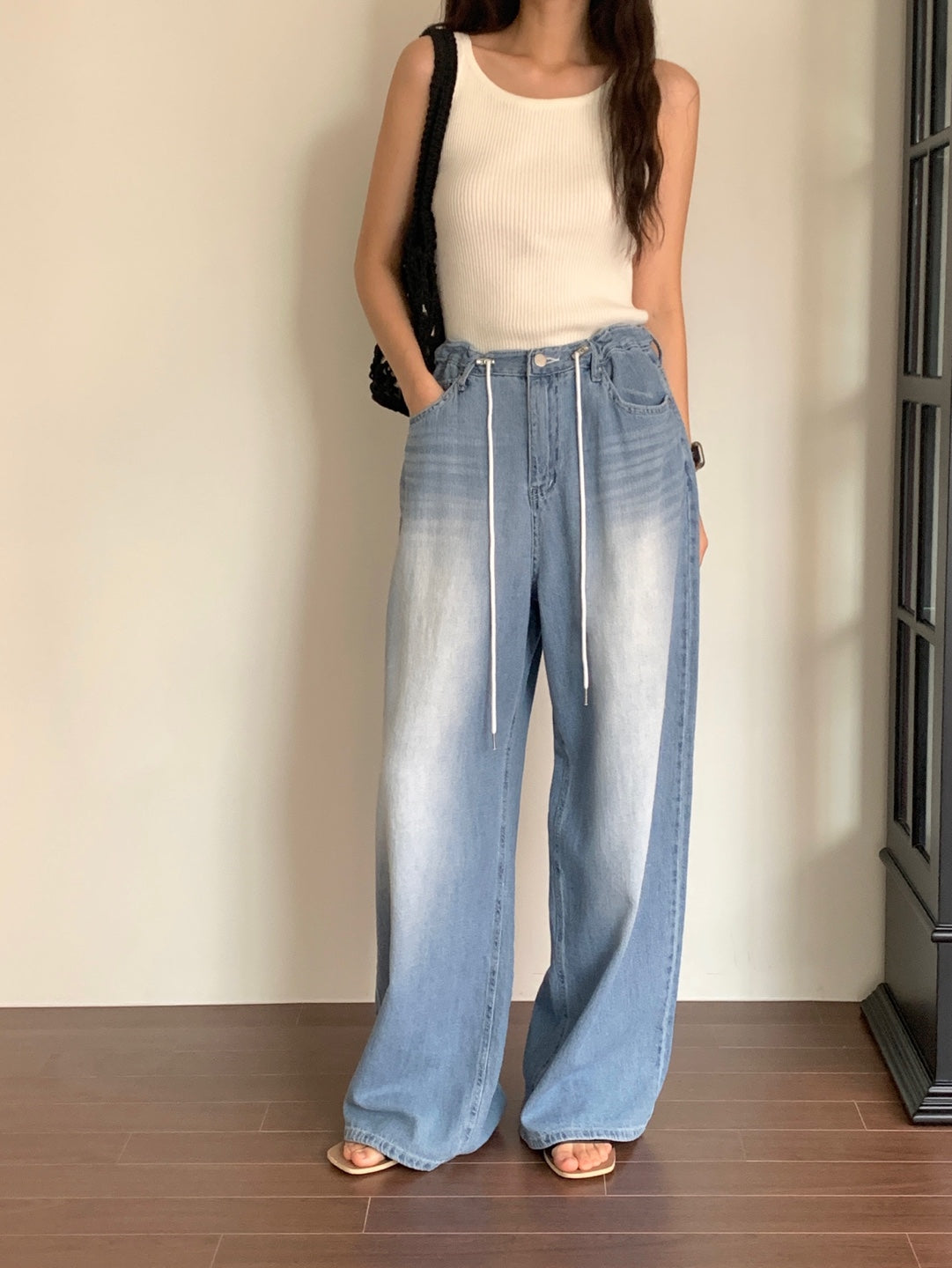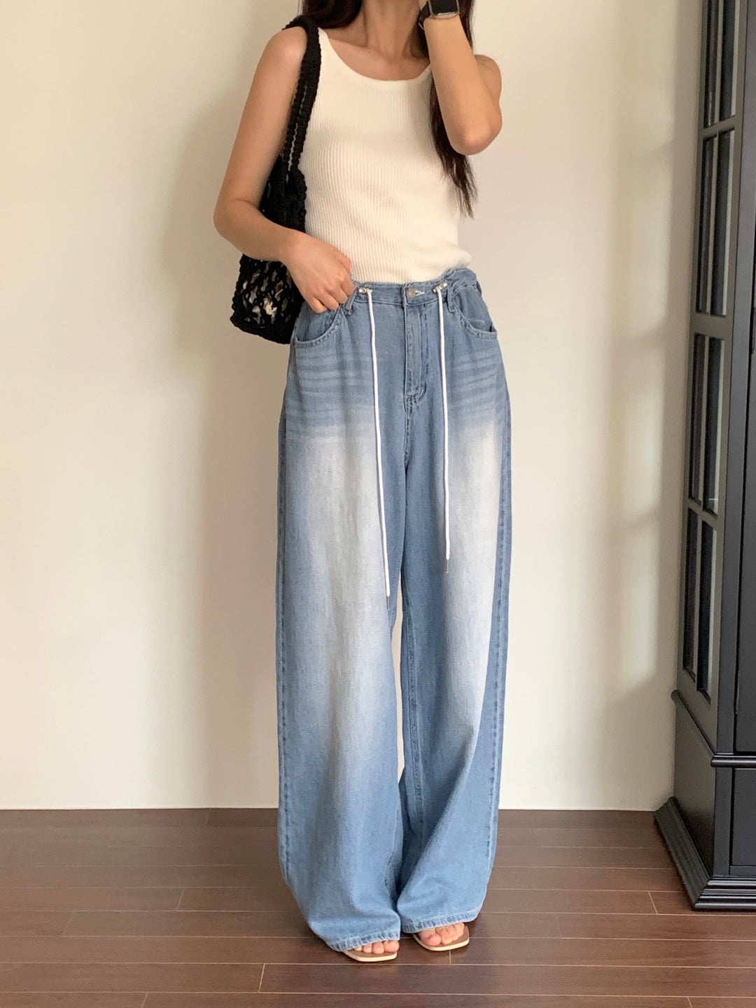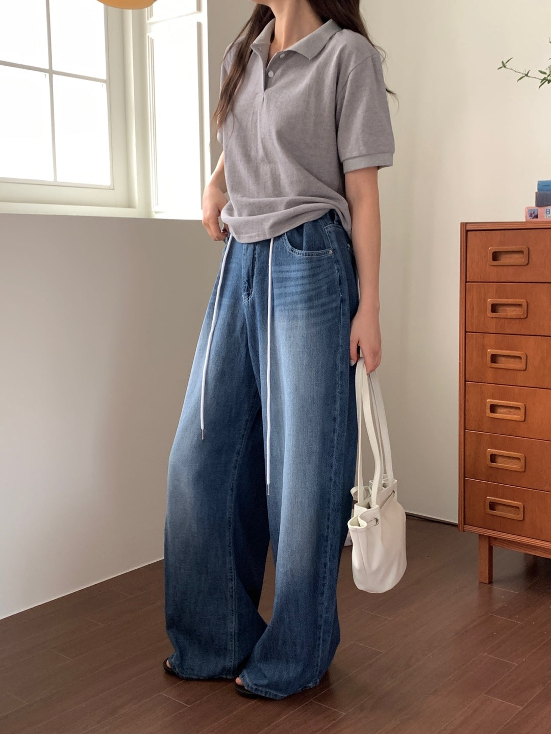 Introducing our New Wide Summer Denim, crafted from soft washed denim in our best-selling wide leg fit. Our lightweight and fluid washed denim material provides effortless style and comfort in the summer heat. The adjustable stopper with drawstrings allows for a customizable fit, while the airy wide legs give you ultimate comfort and ease of wear. Offered in two shades of classic denim with a worn-in wash. Upgrade your denim game this summer.