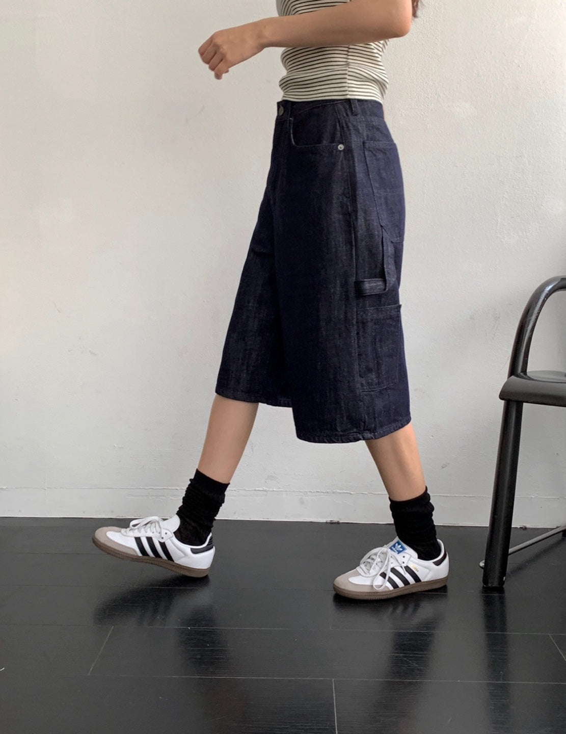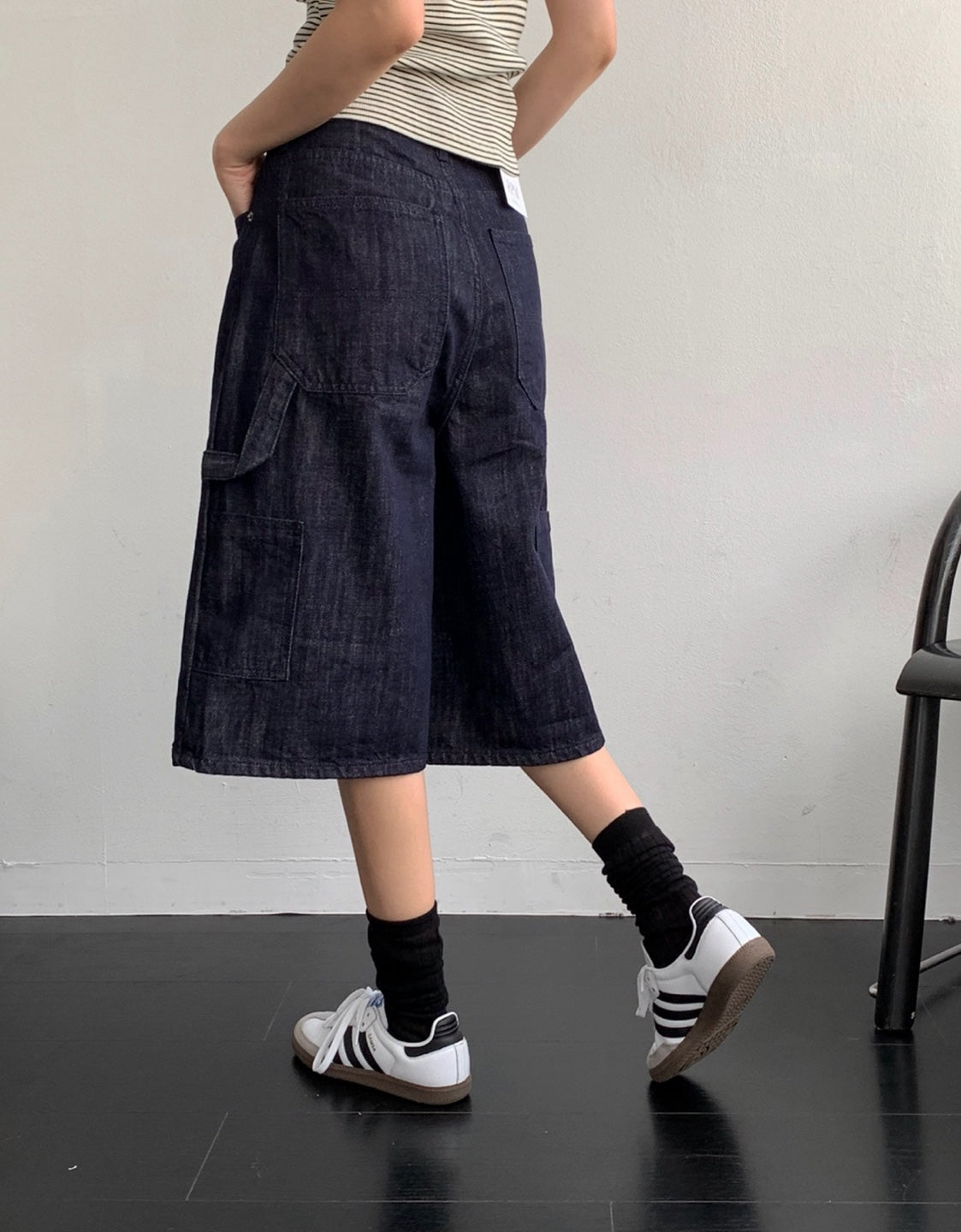 Experience the durability and style of our Non Fade Denim Jorts. Crafted from premium lightweight raw denim that won't lose its color, these half length shorts feature utility pockets and cargo details. The beautiful dark raw denim color is highlighted by matching top stitching. Enhance your wardrobe with this must have for the season.
