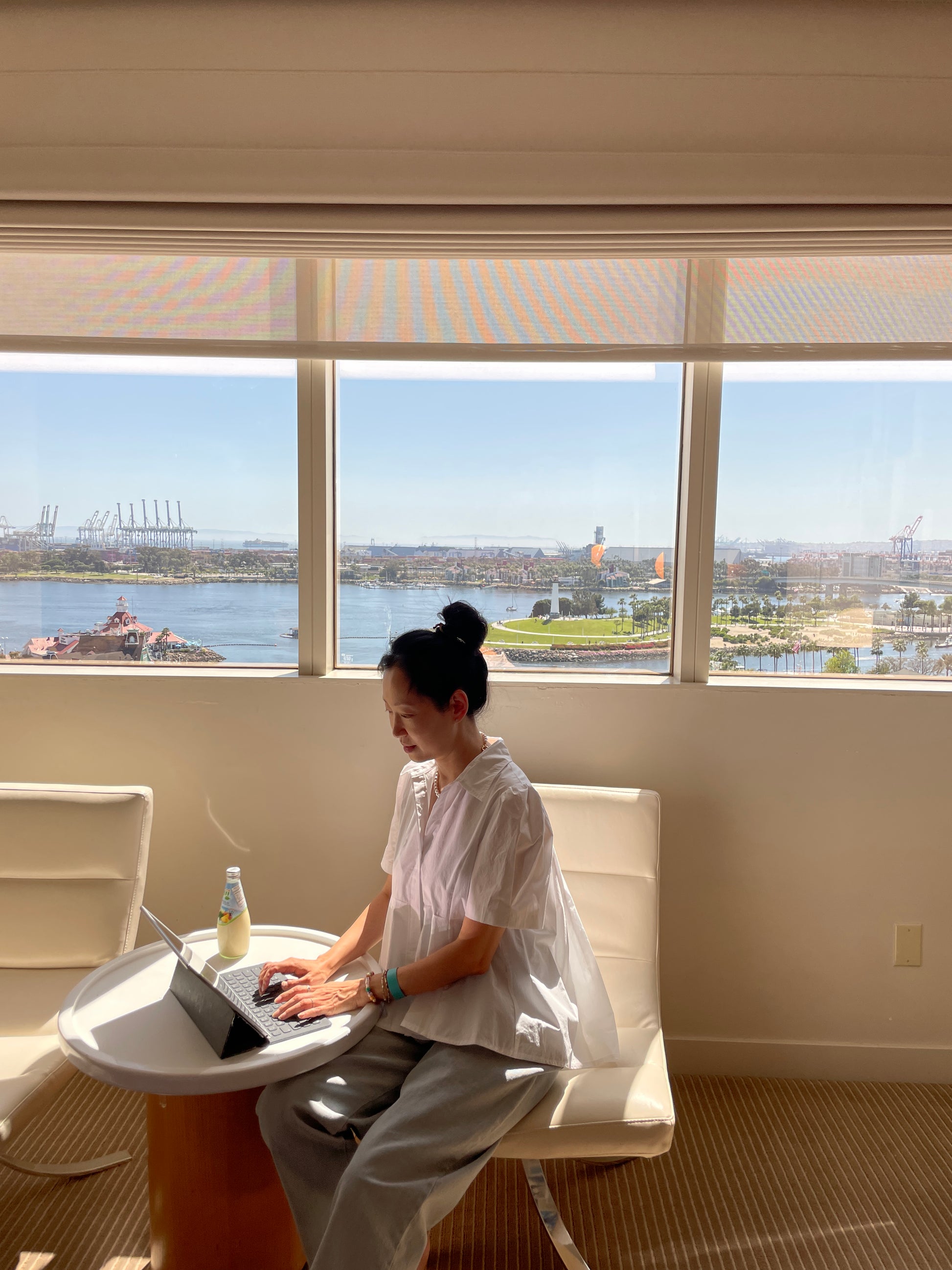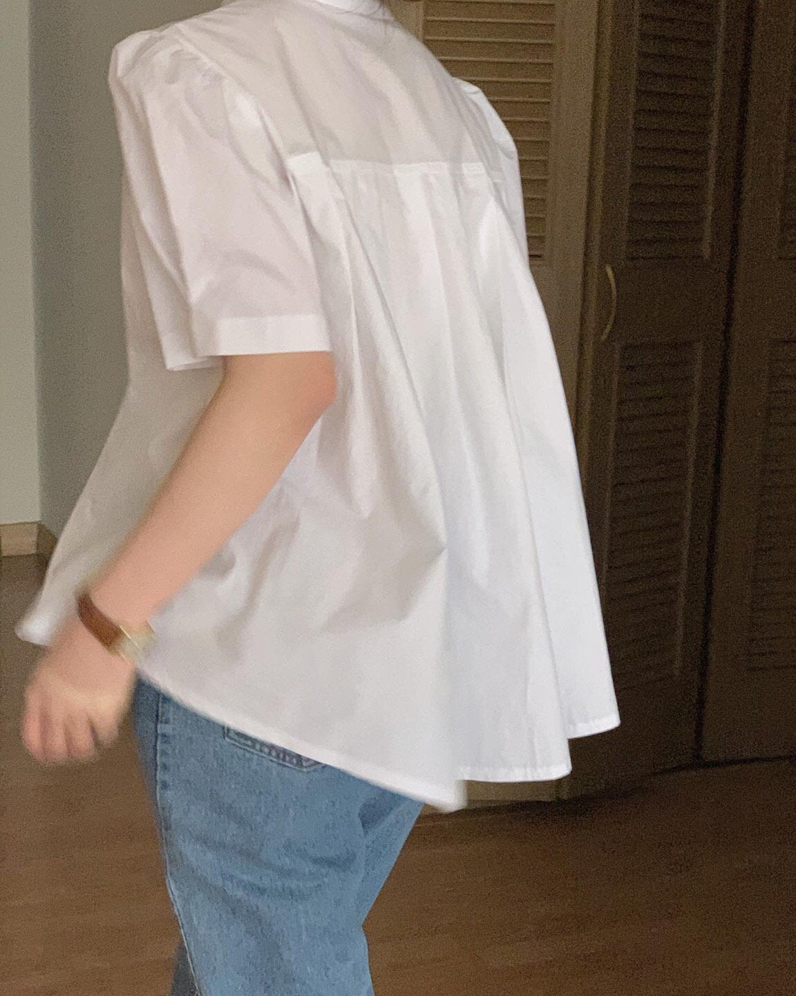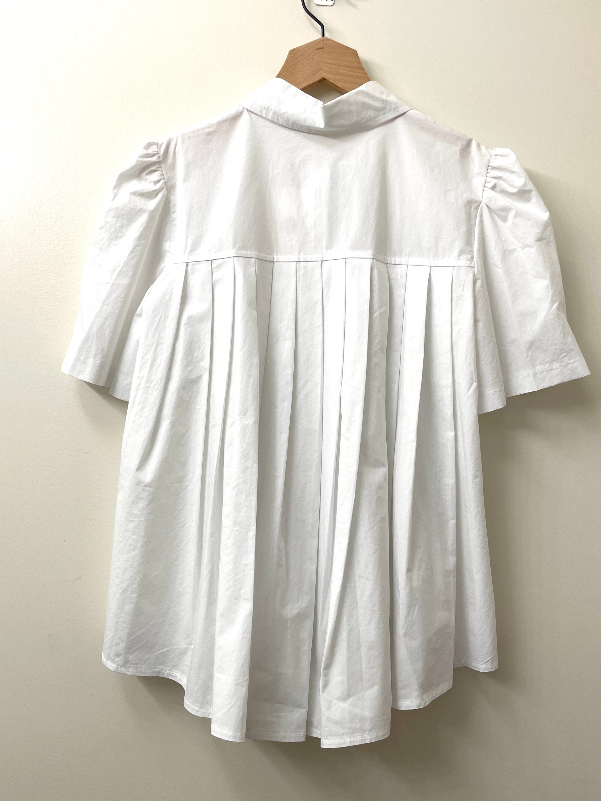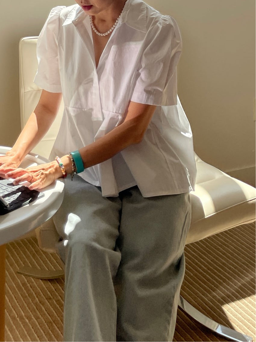 Princess seam design with flared peplum in the front and pleated shirttail in the back