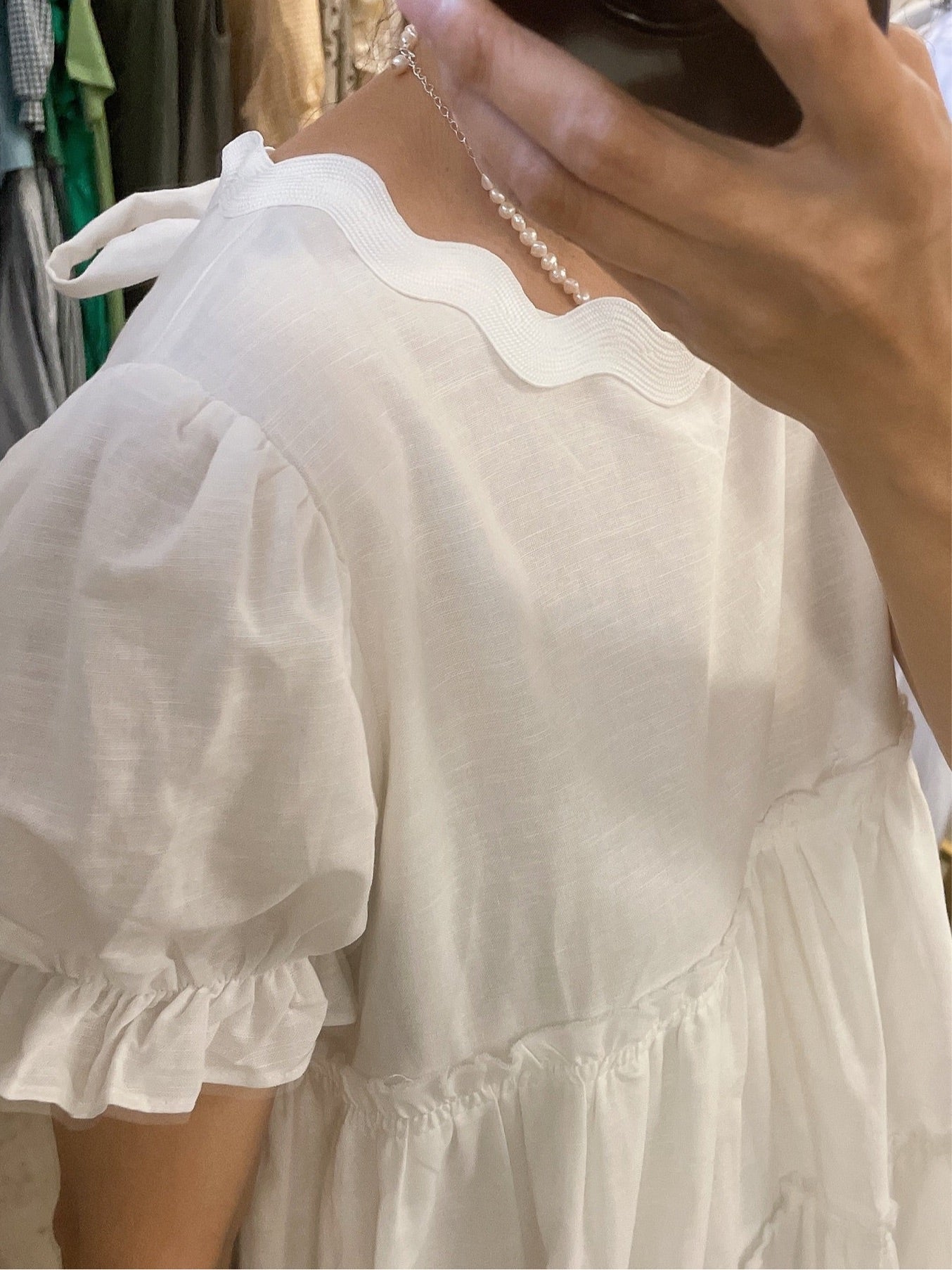 Wide ric-rac tape around neckline