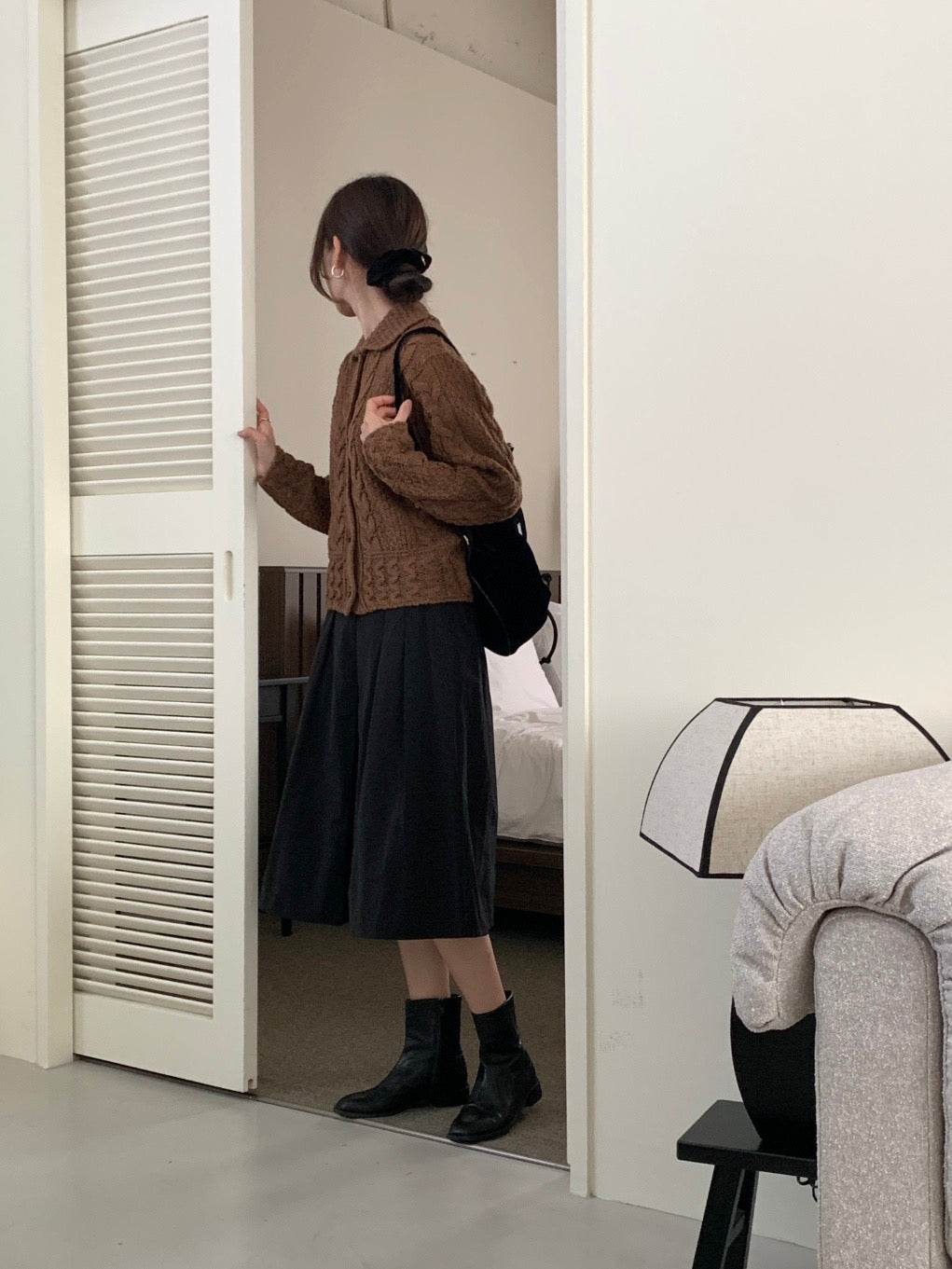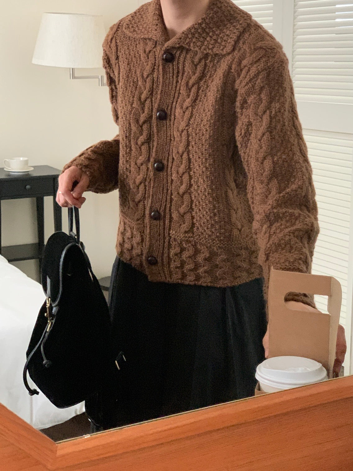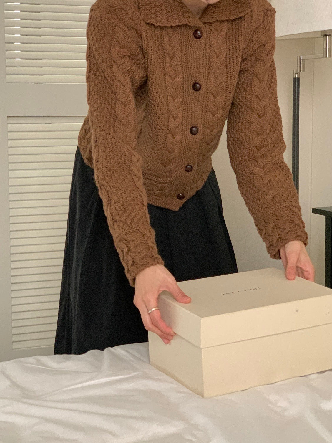 This Scottish Wool Multi Cable Cardigan is a stylish addition to any wardrobe. Crafted from lightweight Scottish wool yarn, it features multi cable and tuck stitches that offer a timeless aesthetic. The perfect length hits at the high hip and provides great coverage for layering over a turtleneck or under a coat.