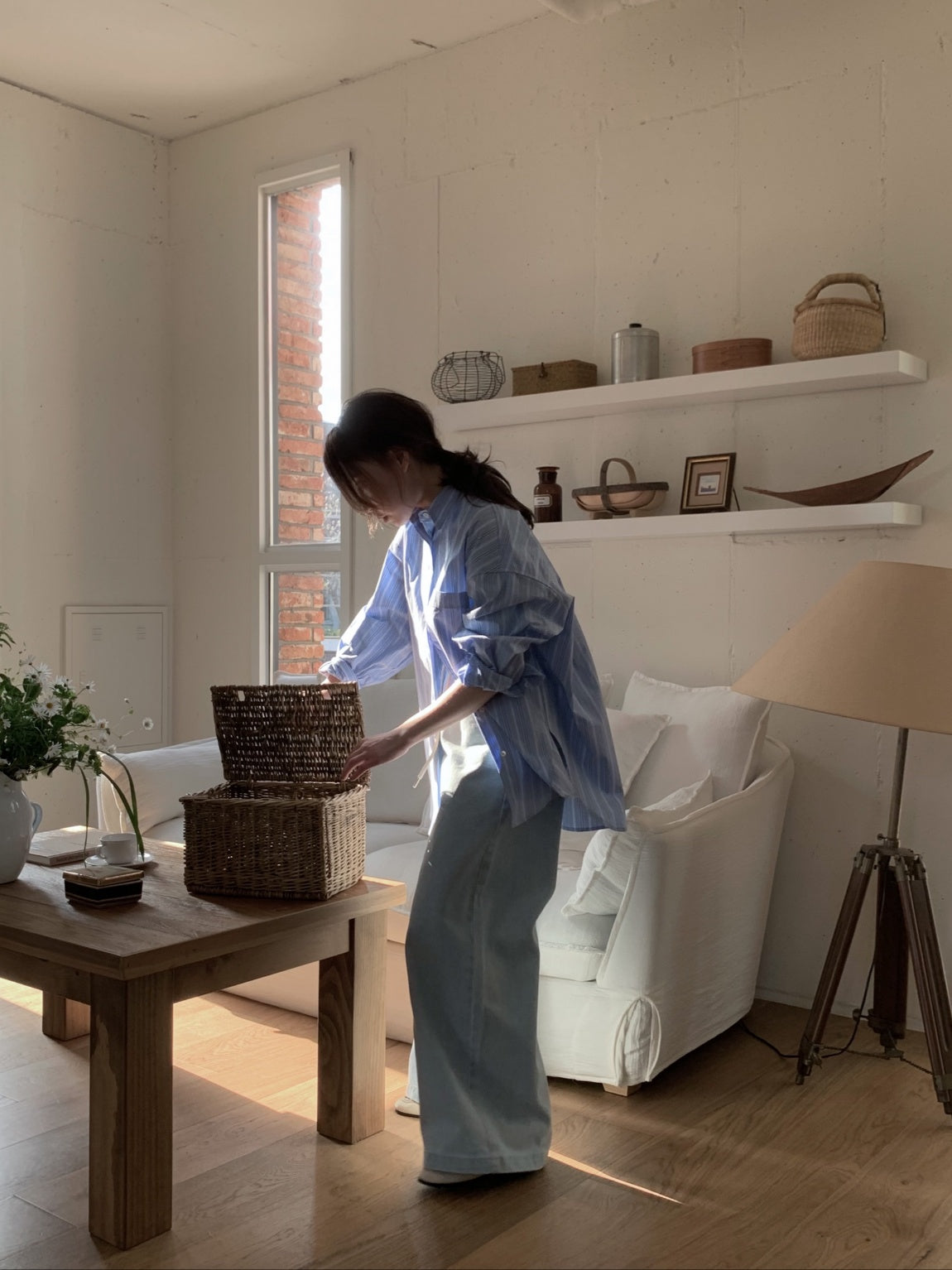 Upgrade your wardrobe with our Uber Wide Denim Pants. The elastic waist and drawstring provide a comfortable fit for all-day wear. Available in light blue denim wash and natural twill denim, these pants effortlessly exude a relaxed and carefree mood, making them the perfect addition to any daily outfit.