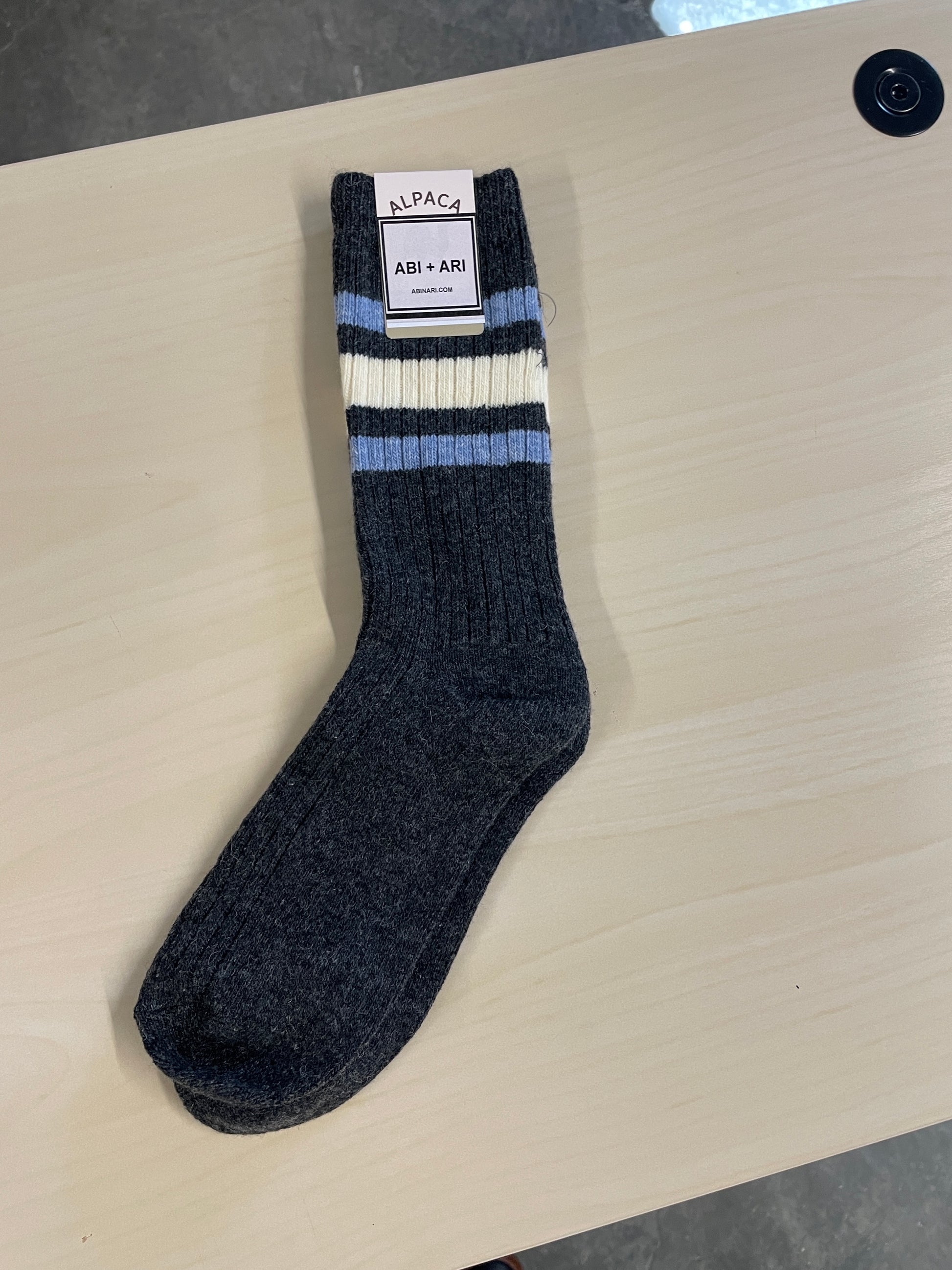 Alpaca Blend Stripe Socks are composed of a luxurious blend of alpaca and wool and resilient nylon and poly, making them the ideal daily wear socks. These 6” neck rib socks come in a beautiful color stripe and provide a lux casual look and feel.