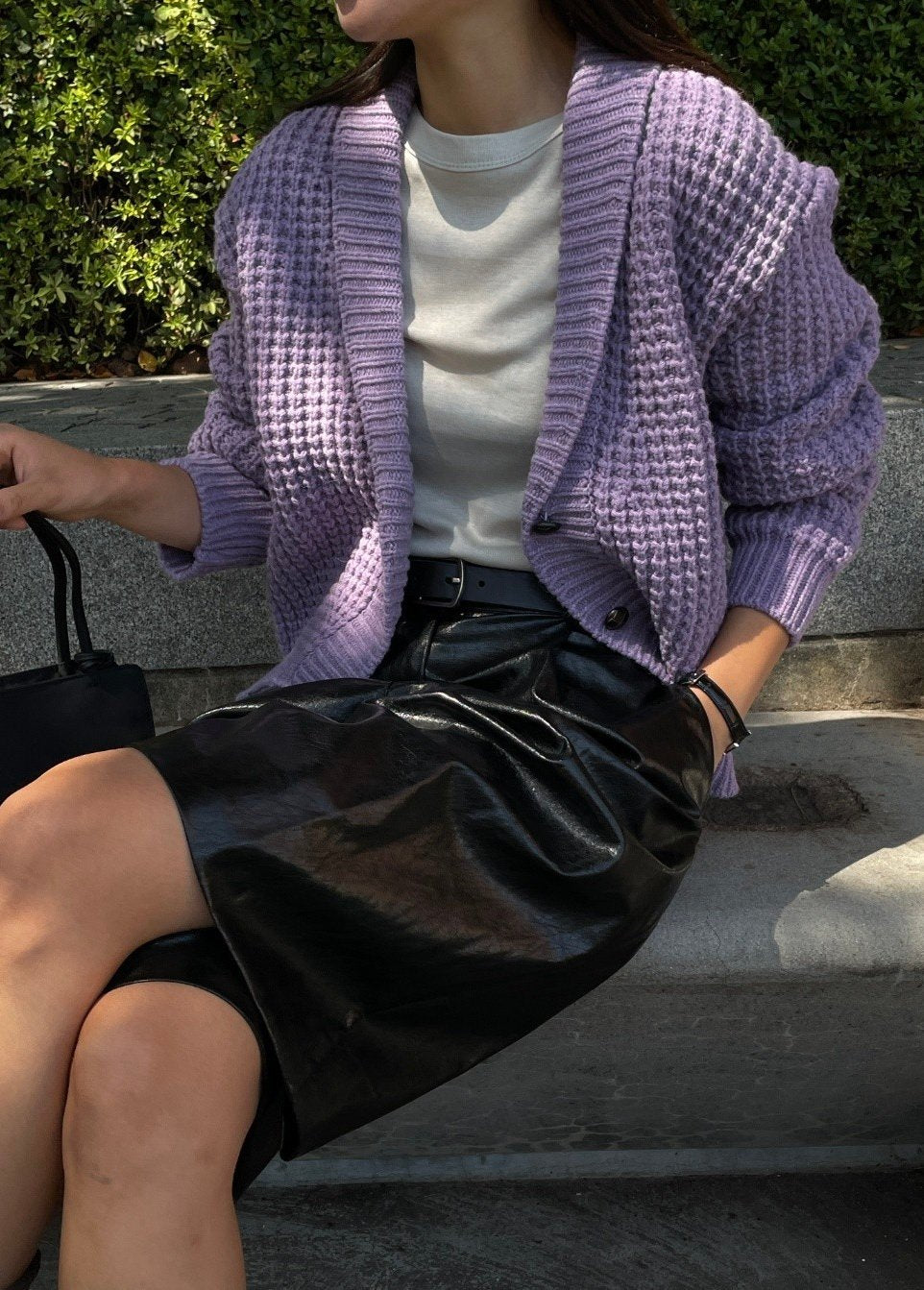 Kintted in plush blend of wool, nylon, and rayon, this Shawl Collar Wool Cardigan is a perfect piece to style your summer wardrobe into fall transition ready outfits. Its shawl collar, plush tuck stitch, and leather knot button add a sophisticated touch, perfect for both smart and casual occasions.