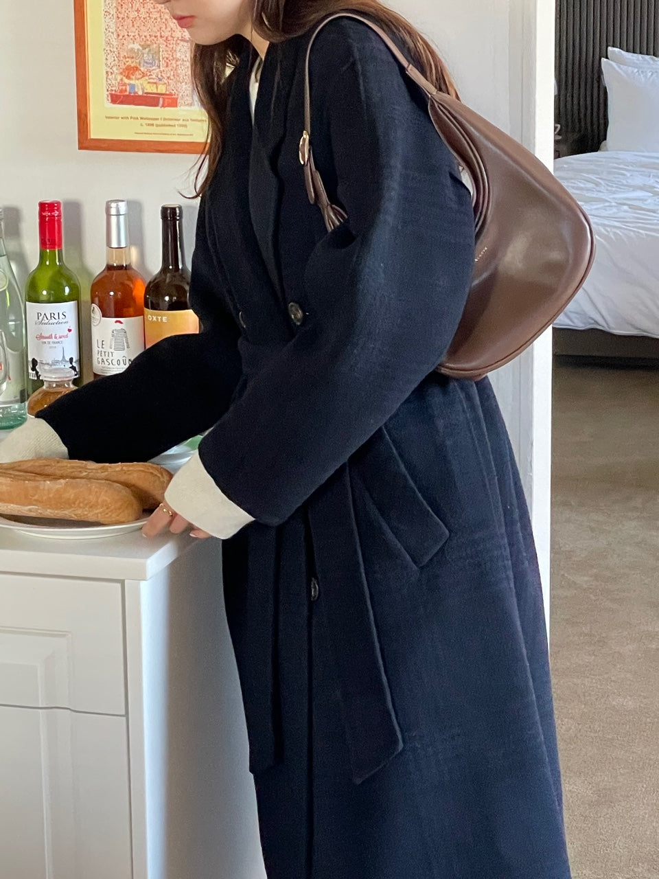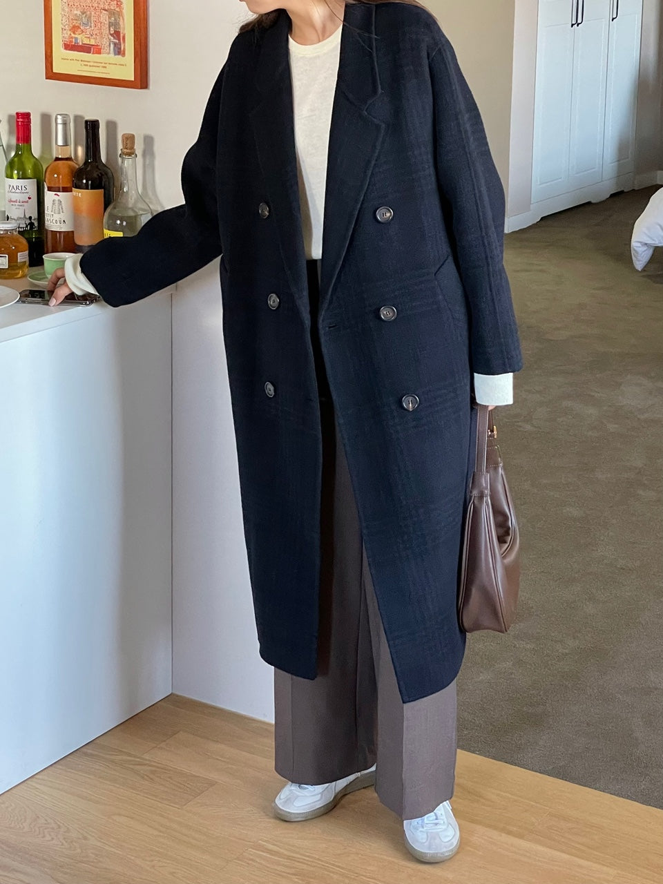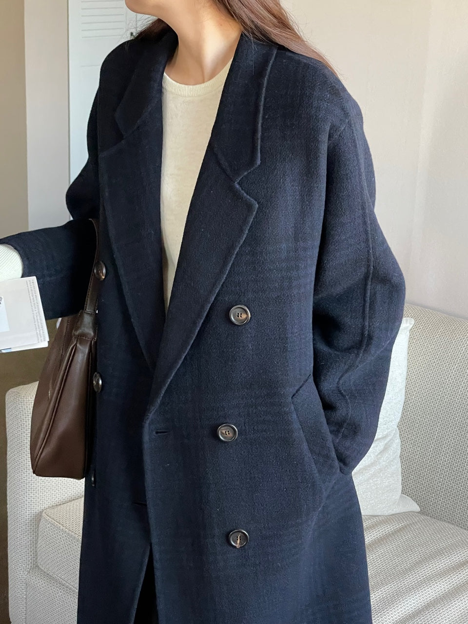 <Abi + Ari Black> Wool Plaid Handmade Coat