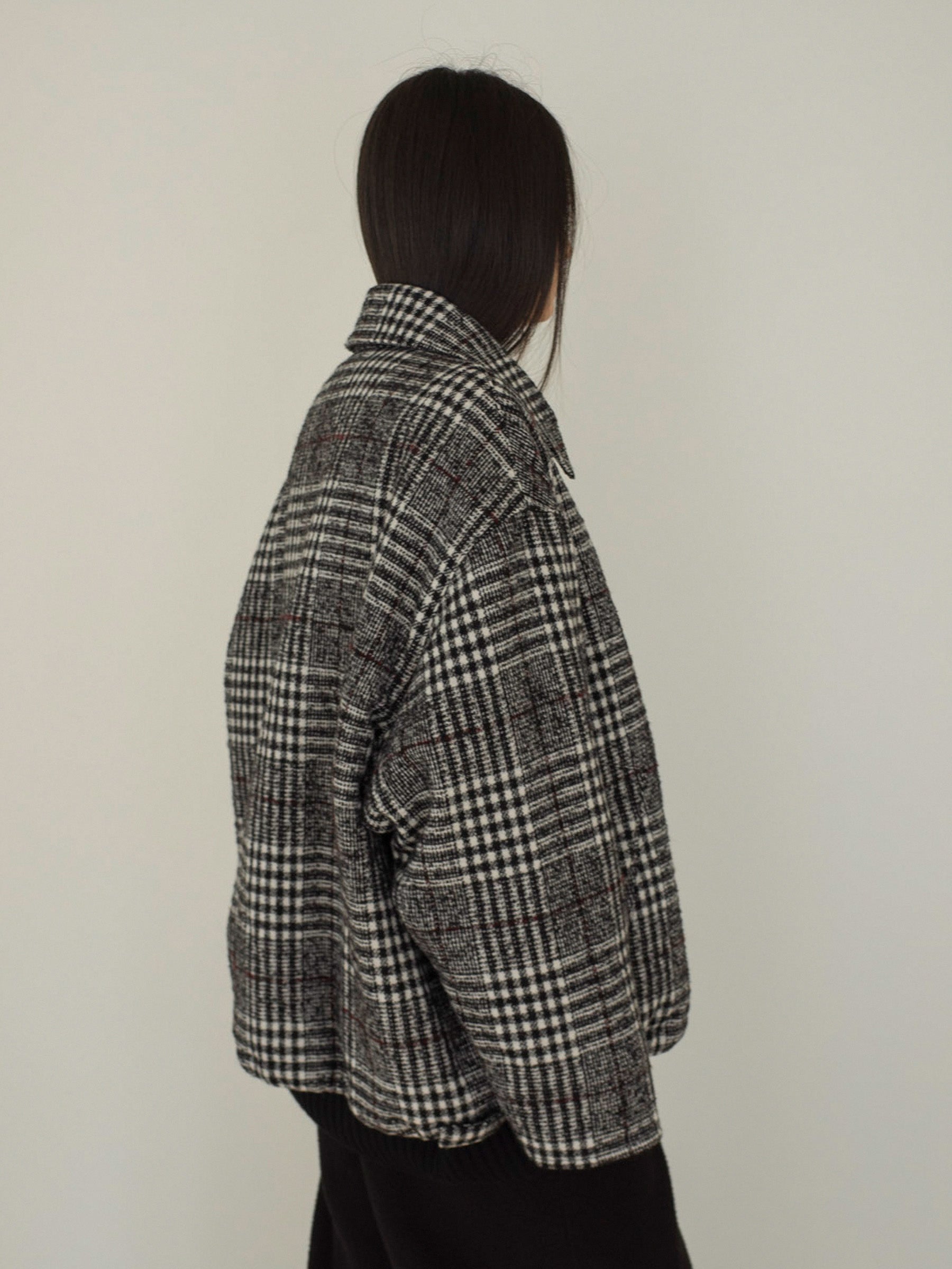 This wool blend plaid short coat combines understated sophistication with practical design. The relaxed fit moves with you, while expertly curved sleeves create ample room for layering without restriction. Refined details like the hidden placket and seamless welt pockets keep the aesthetic clean and polished. Premium construction shines through adjustable hem tabs and drawcords that transform the silhouette into a flattering blouson shape. Insulated with just 2oz of fiberfill padding, this coat strikes the perfect balance—delivering genuine warmth and style without adding bulk. An investment piece that works harder than it looks.